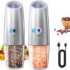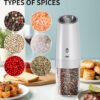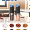 - Grueso ajustable: este juego de molinillo eléctrico de pimienta puede satisfacer tus necesidades de molienda. Ajusta fácilmente el núcleo para lograr la tosquedad perfecta para moler sal, pimienta o cualquier otro condimento de tu elección. El molinillo de sal eléctrico recargable está hecho de un núcleo de molienda de cerámica de alta calidad para ayudarte a conservar el sabor original de las especias
