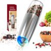CIRCLE JOY Gravity – Juego de molinillo eléctrico de sal y pimienta con luz LED, funciona con pilas, grosor ajustable, gran capacidad, para el hogar, cocina, barbacoa