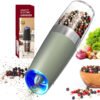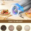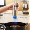 - Luz LED brillante: nuestro juego de saleros y pimenteros eléctricos cuenta con una luz LED azul brillante que se enciende automáticamente cuando está en uso. La luz LED te permite ver fácilmente cuánto condimento estás agregando, incluso en condiciones de poca luz