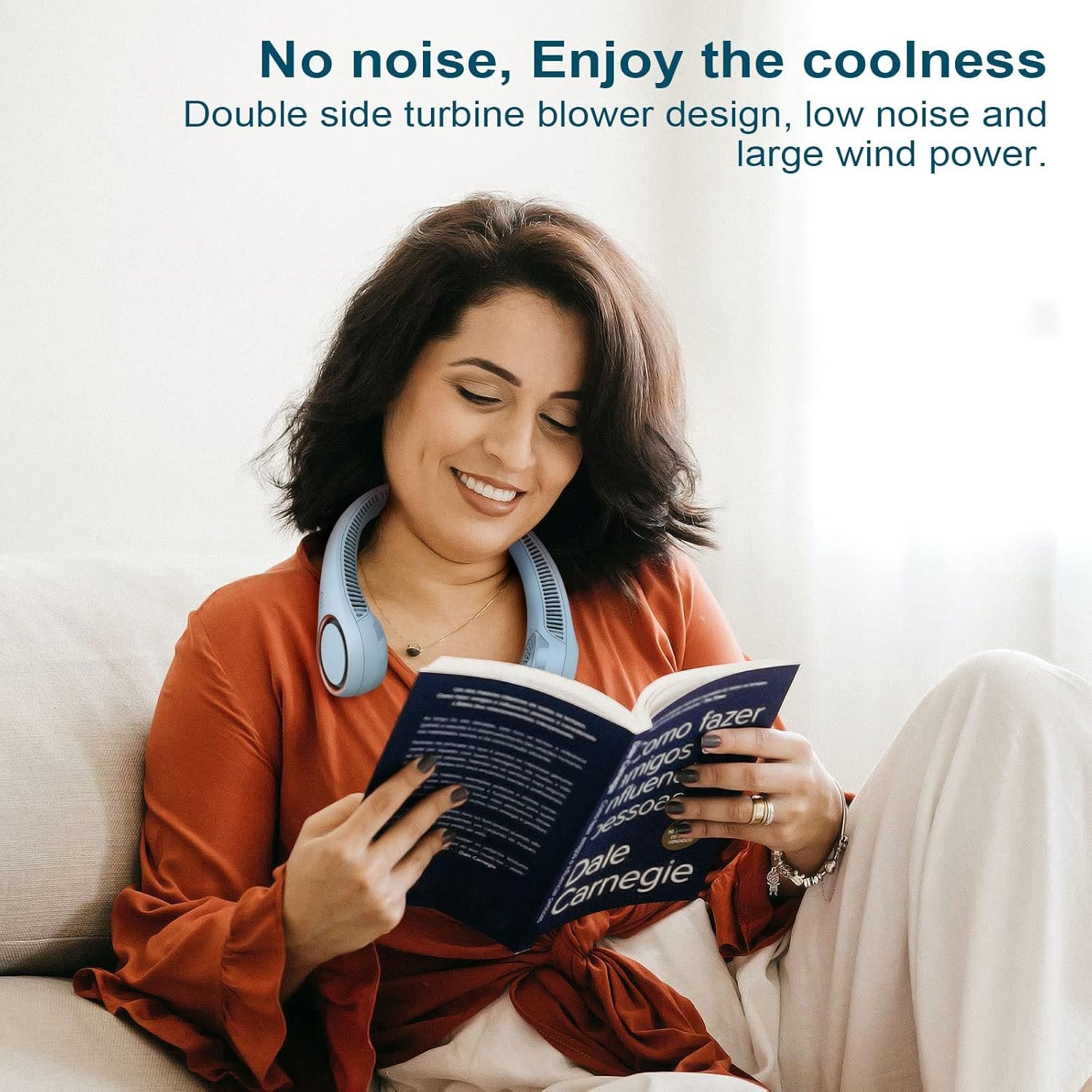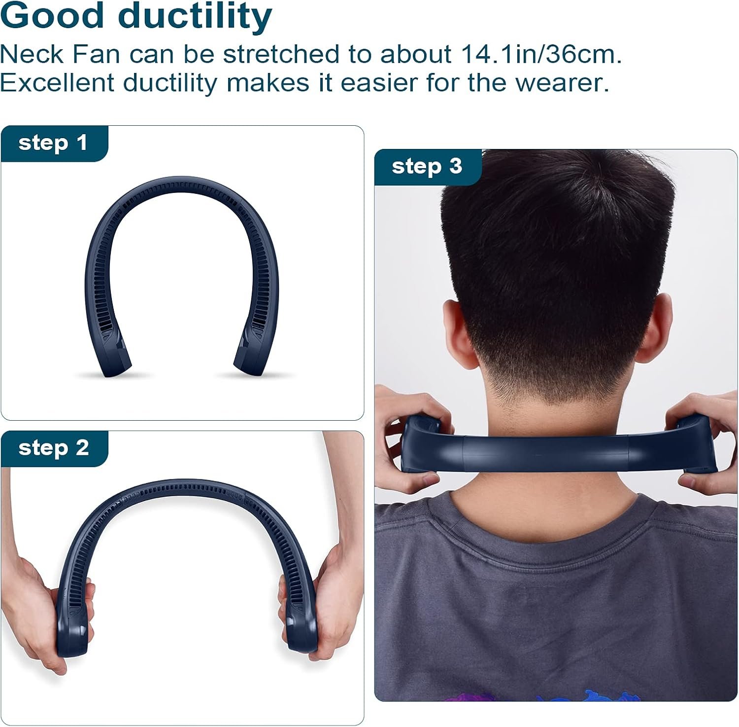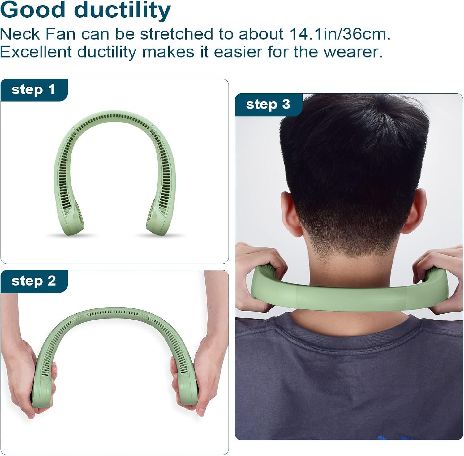 - Libera tus manos: la apariencia del ventilador de cuello es el diseño de auriculares, de moda y versátil. Cuando se usa sin preocuparte de que el cabello se enrolle. El ventilador de cuello colgante es ligero, fácil de llevar para exteriores, interiores, oficina, gimnasio, viajes, campamento, etc
