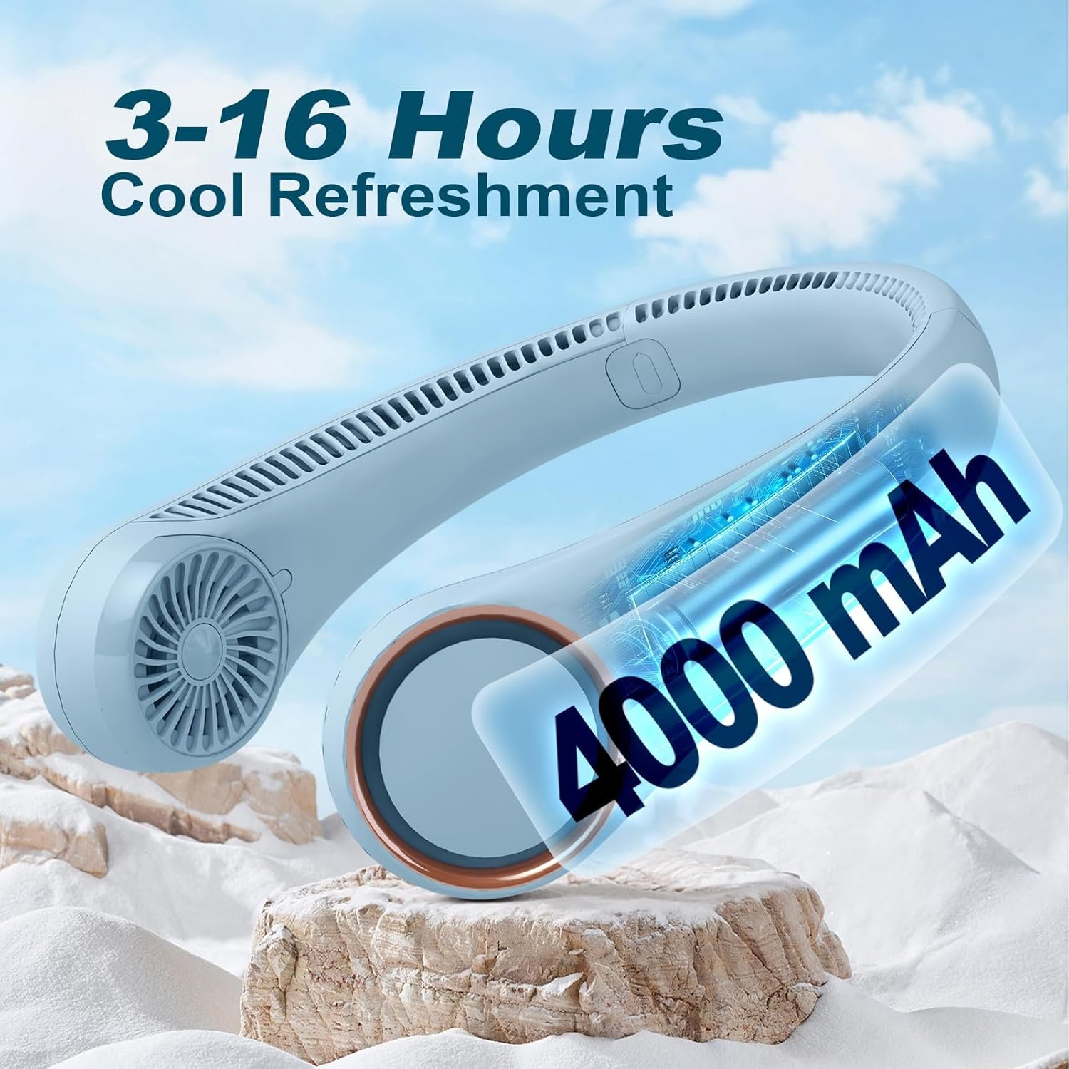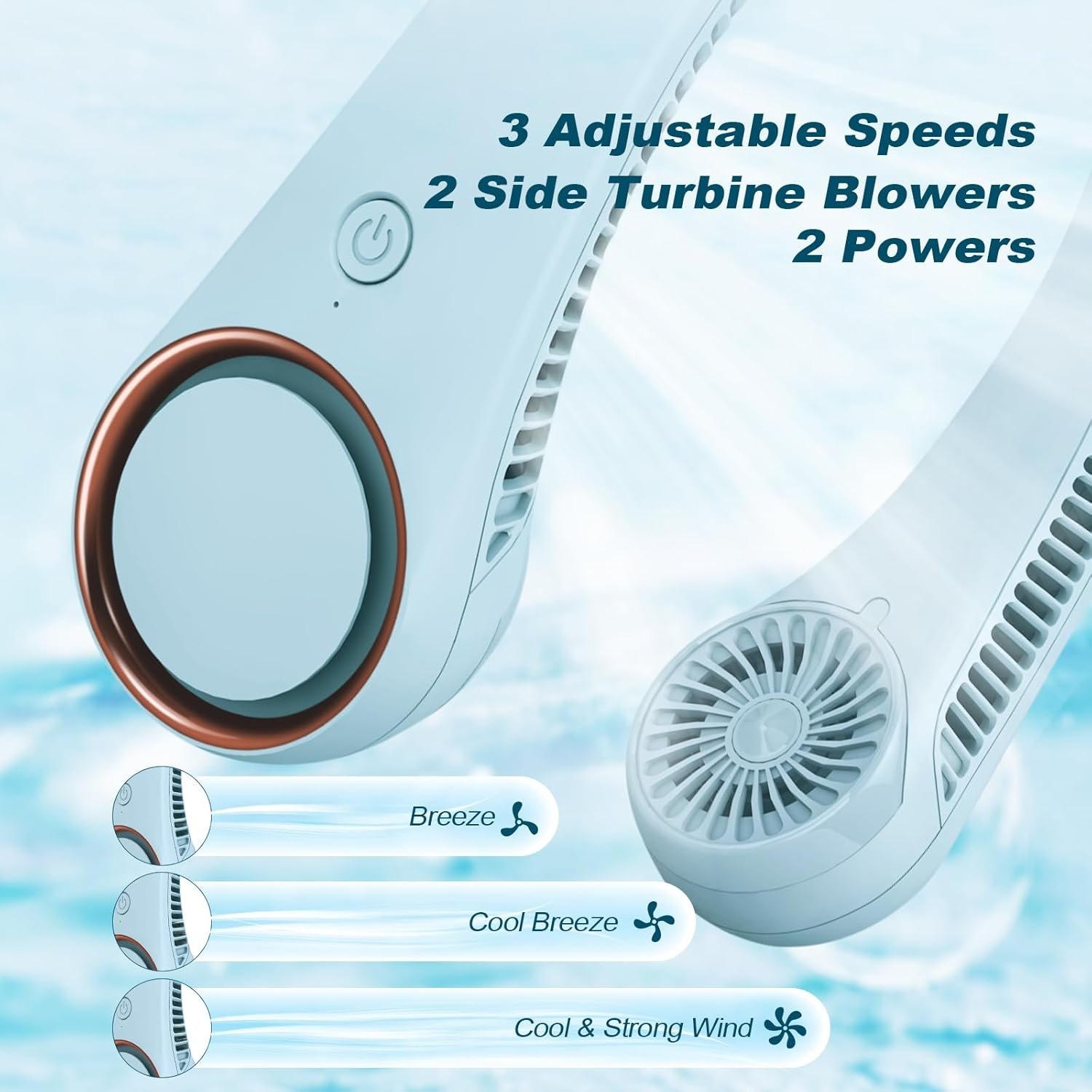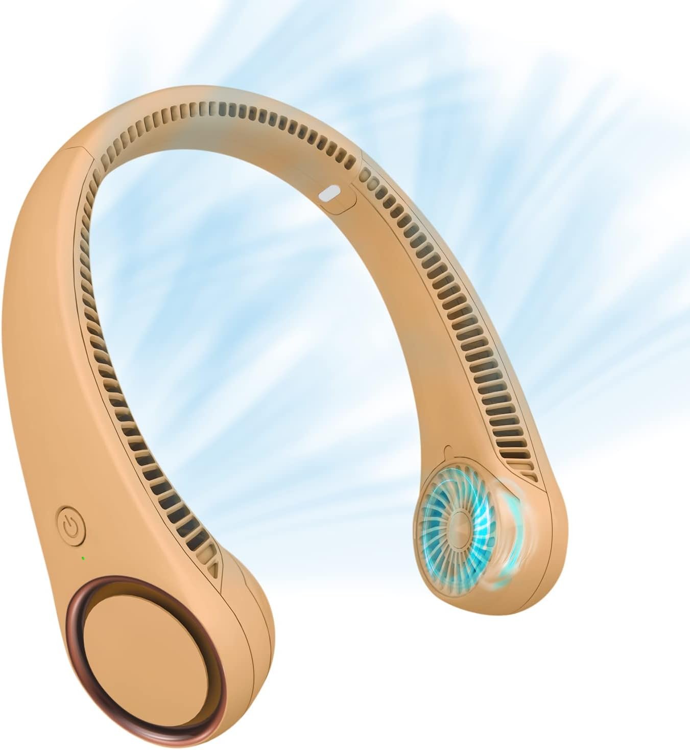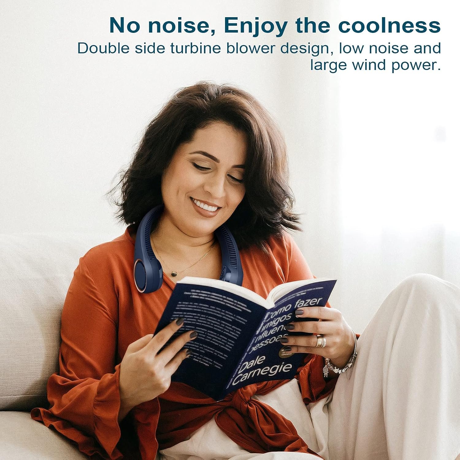 - Libera tus manos: la apariencia del ventilador de cuello es el diseño de auriculares, de moda y versátil. Cuando se usa sin preocuparte de que el cabello se enrolle. El ventilador de cuello colgante es ligero, fácil de llevar para exteriores, interiores, oficina, gimnasio, viajes, campamento, etc