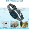 - IP67 resistente al agua: este collar e impermeable es conveniente para perros que juegan alrededor de una piscina o bajo la lluvia. (Nota: el control remoto solo es a prueba de salpicaduras. No lo sumerjas en agua)