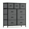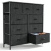 Cómoda de tela con 9 cajones, estructura de acero y tablero de madera para dormitorio, armario y entrada.