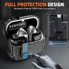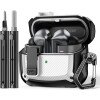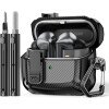 - Diseño de protección completa: está hecho de material TPU + policarbonato resistente carcasa rígida de poliuretano termoplástico y textura de fibra de carbono diseñada para proporcionar protección completa. También está equipado con un diseño de bolsa de aire hueca de cuatro esquinas que proporciona una excelente absorción de impactos y resistencia a los impactos, protegiendo tus auriculares del polvo, golpes, caídas y arañazos.
