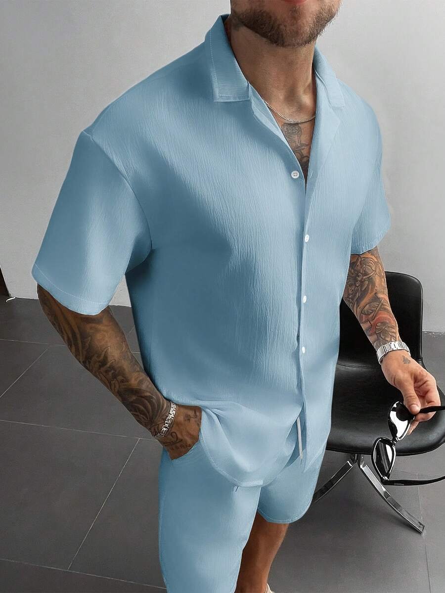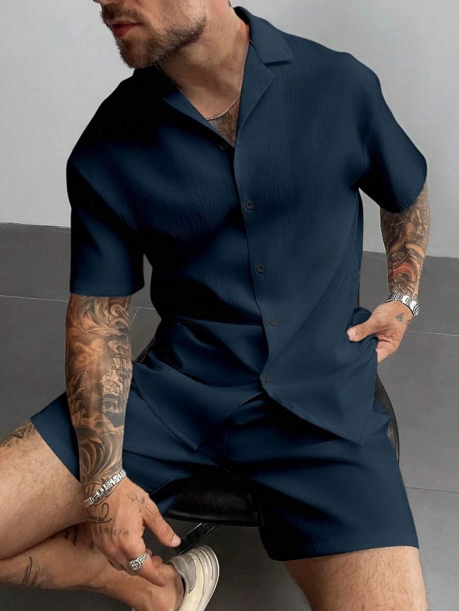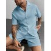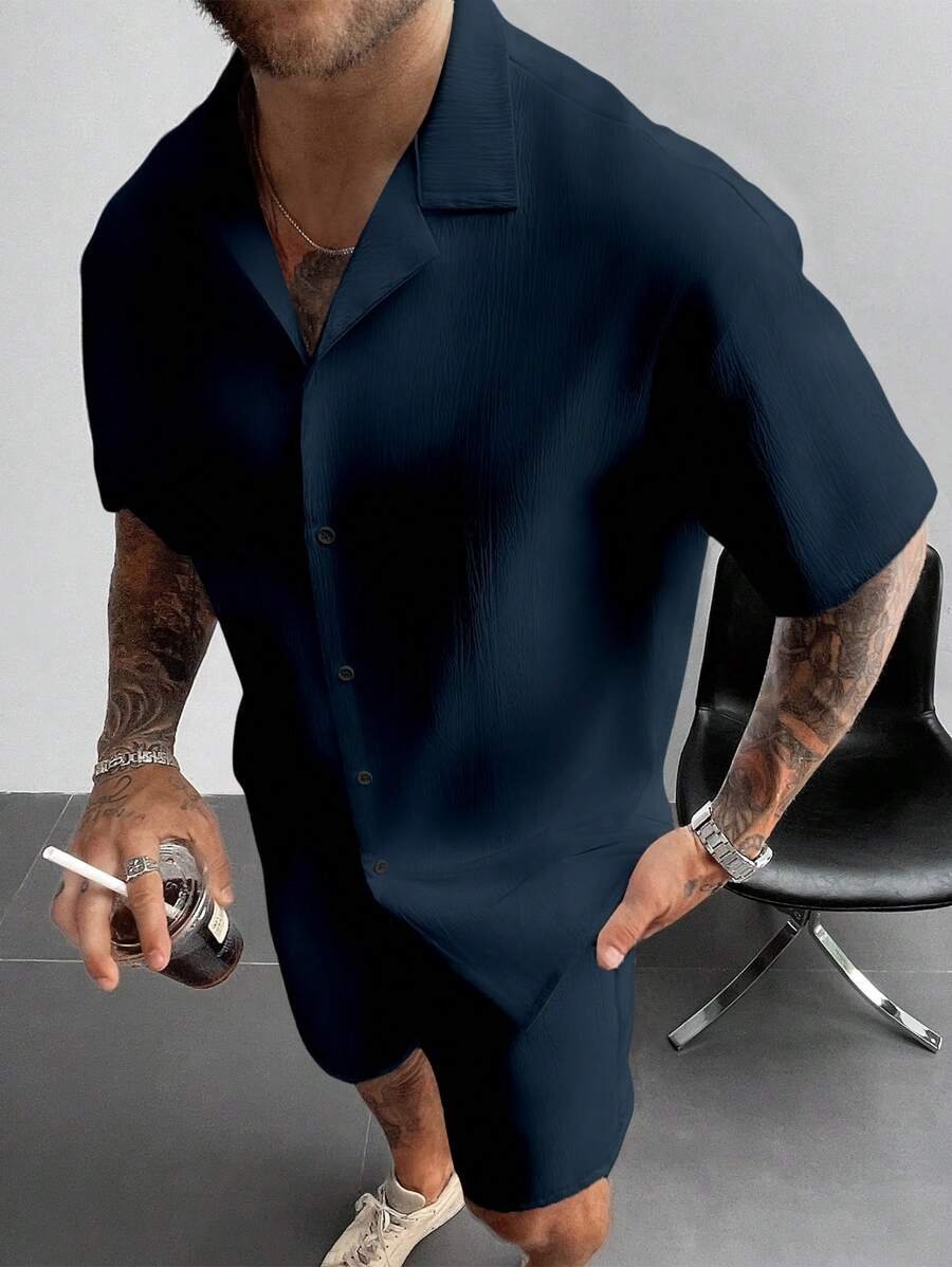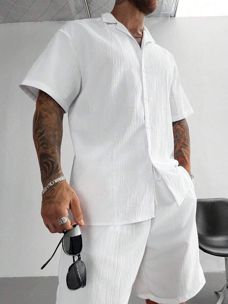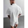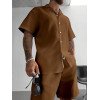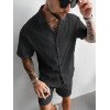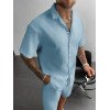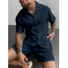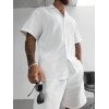 Conjunto de 2 piezas de verano para hombre, camisa de lino cubano ligera y transpirable con pantalón corto con cordón, estilo casual de “Old Money” para playa, boda, fiesta, vacaciones y viajes, regalo del Día del Padre para esposo, papá, novio, atuendos cómodos