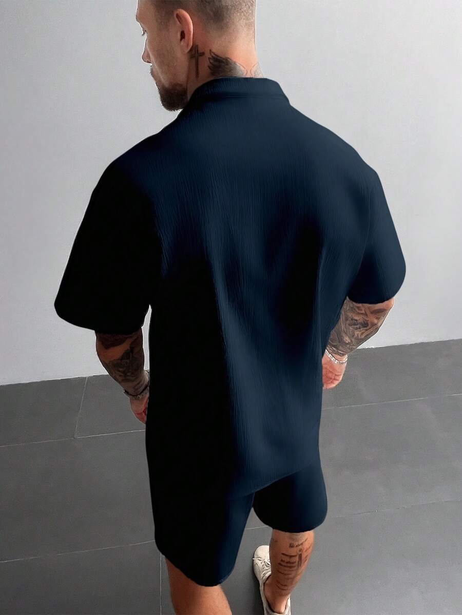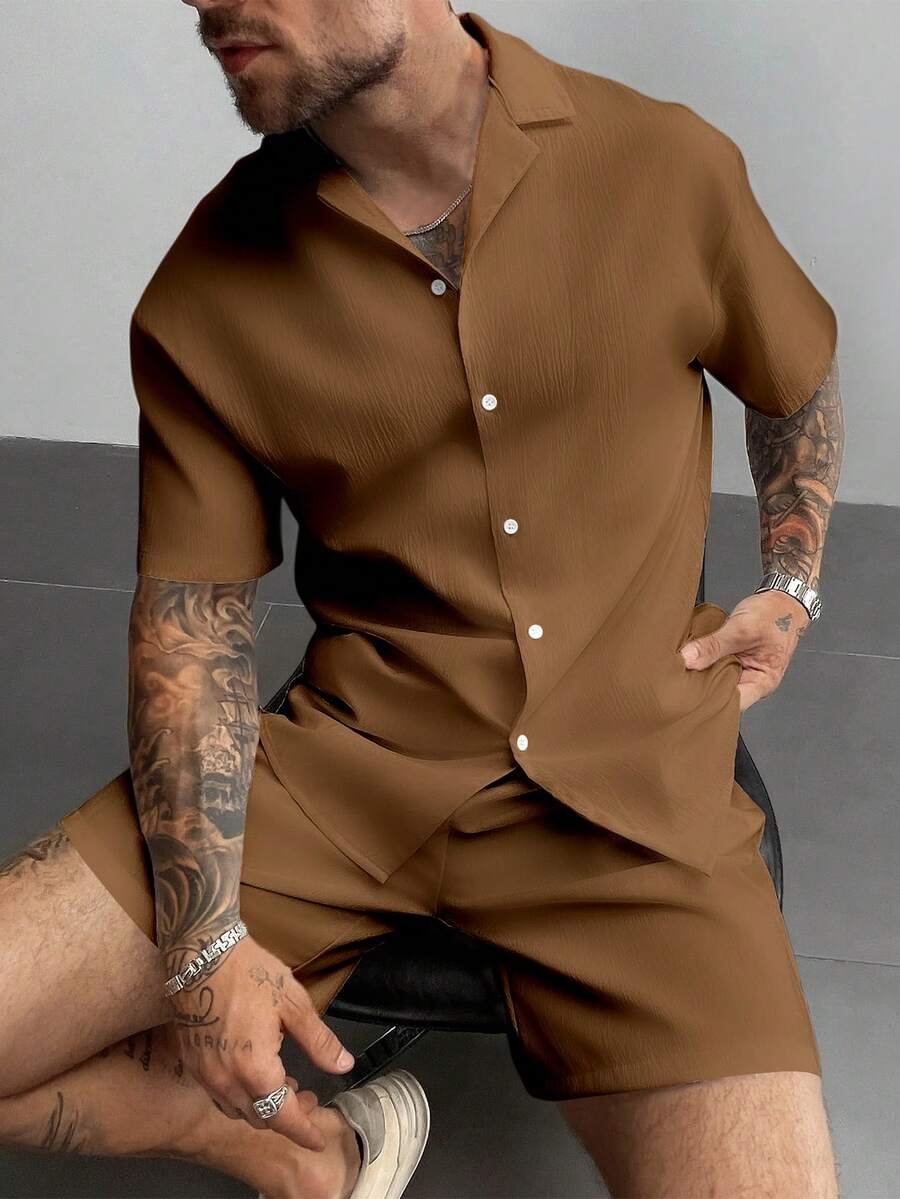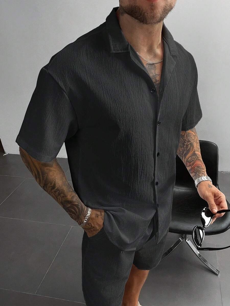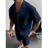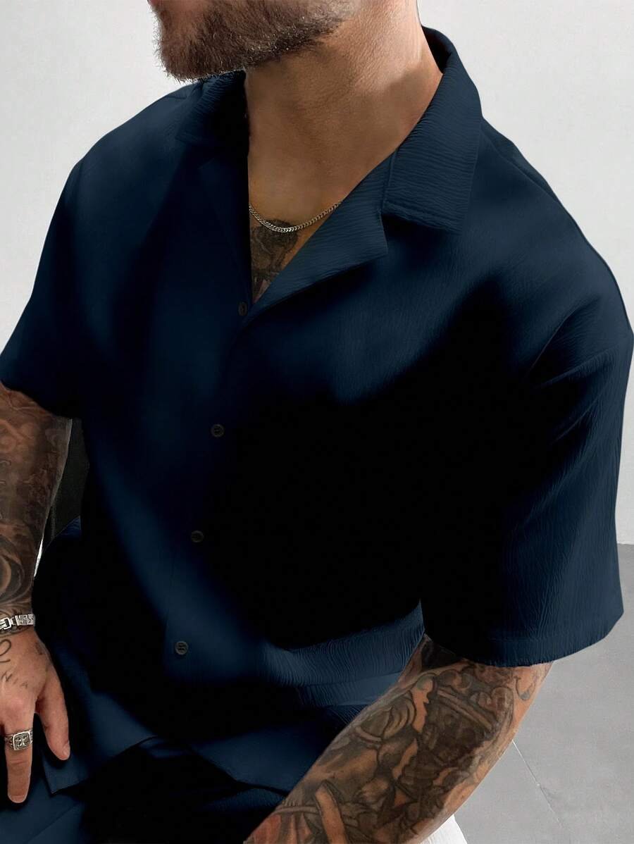 Conjunto de 2 piezas de verano para hombre, camisa de lino cubano ligera y transpirable con pantalón corto con cordón, estilo casual de “Old Money” para playa, boda, fiesta, vacaciones y viajes, regalo del Día del Padre para esposo, papá, novio, atuendos cómodos
