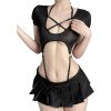 Conjunto de camisón sexy con cuello en V para mujer, lencería de anime, conjunto de body con lazo en la parte superior