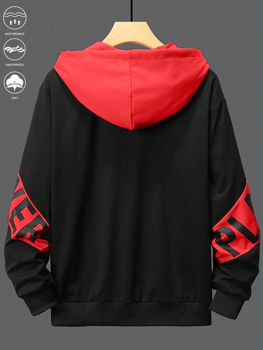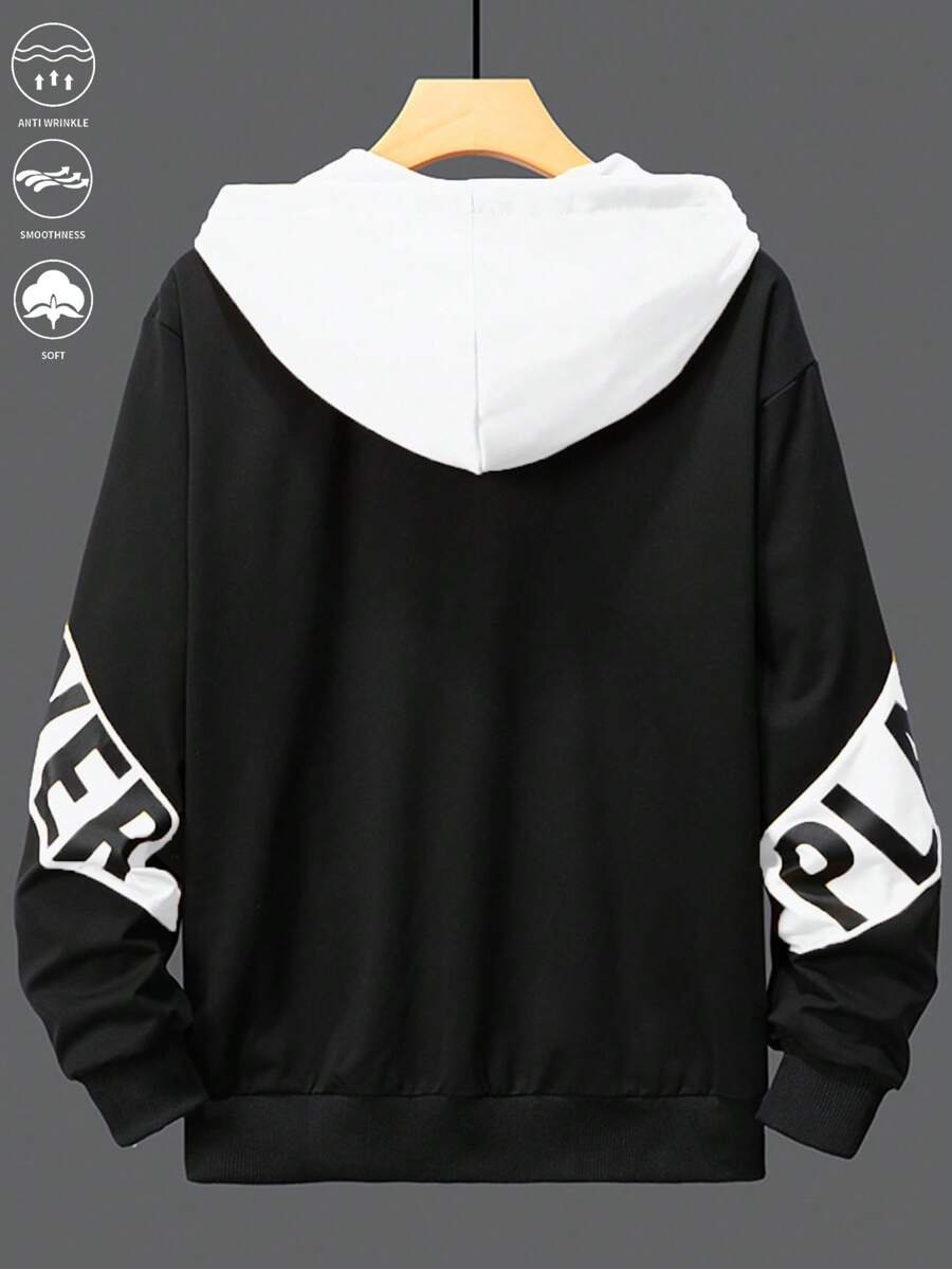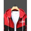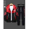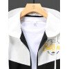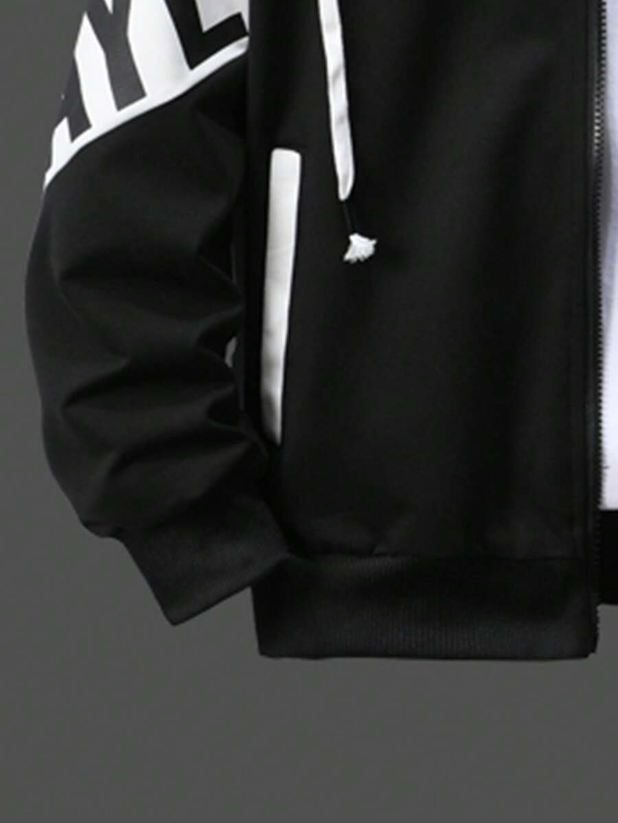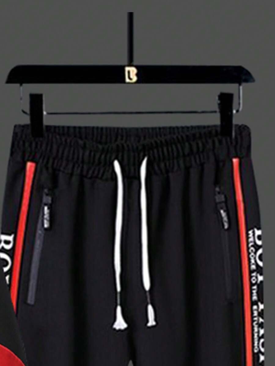 Conjunto de chaqueta y pantalones casuales y versátiles para hombres con parches de colores contrastantes y estampado de letras, ropa de otoño