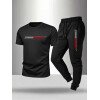 Conjunto de hombre de 2 piezas, camiseta de cuello redondo con estampado de montaña y triángulos + pantalones con cordón para deportes y casual de verano