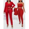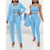Conjunto de tres piezas para mujer con blazer de cuello chal de frente abierto, camiseta de tirantes y pantalones para un aspecto de oficina
