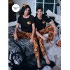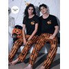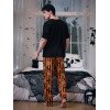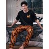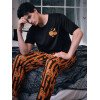 CoupledUp Conjunto de pijama casual de manga corta y pantalones con tema de calabaza de Halloween para hombres