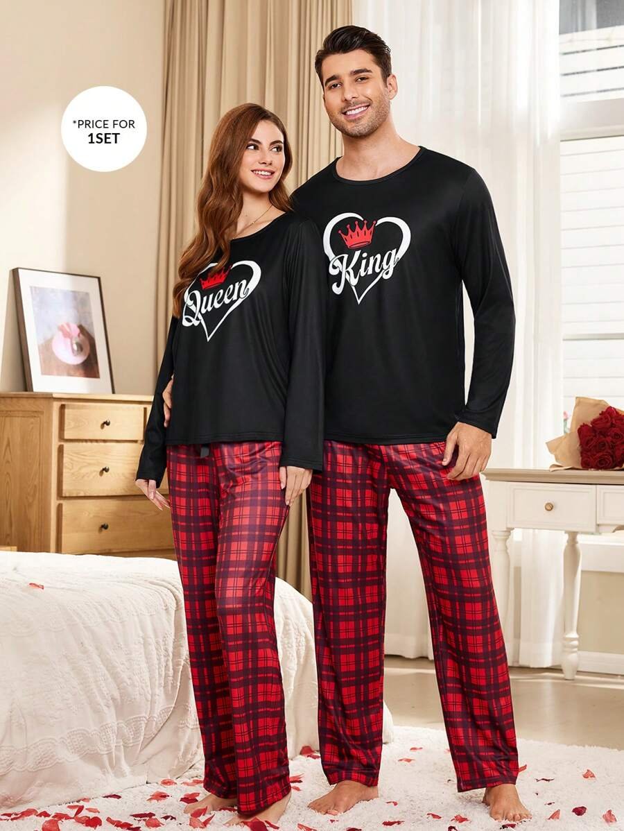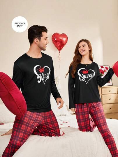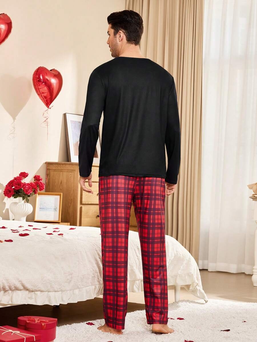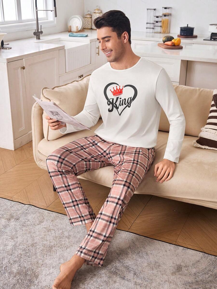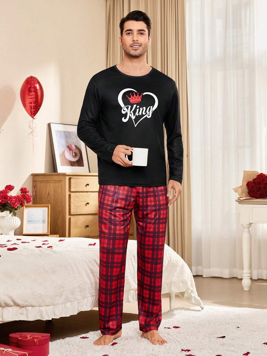 CoupledUp Conjunto de pijama de hombre con corona inglesa y pantalón de contraste de manga larga para el Día de San Valentín