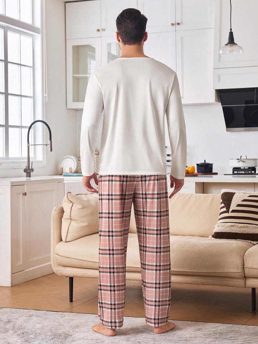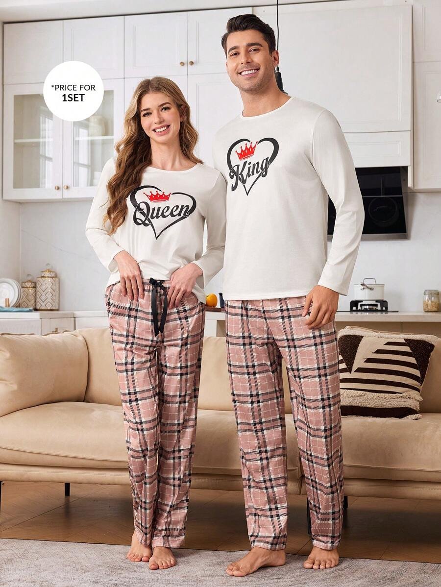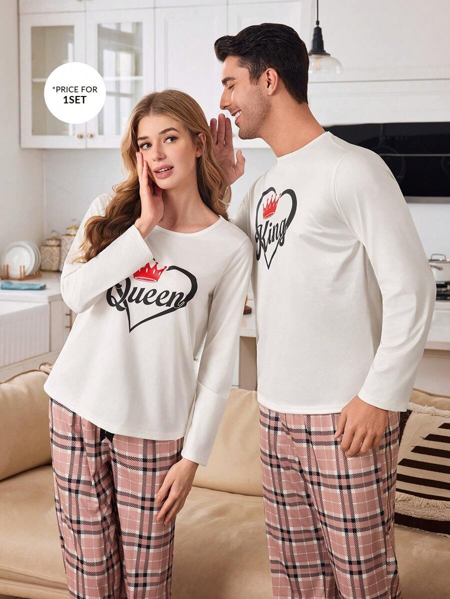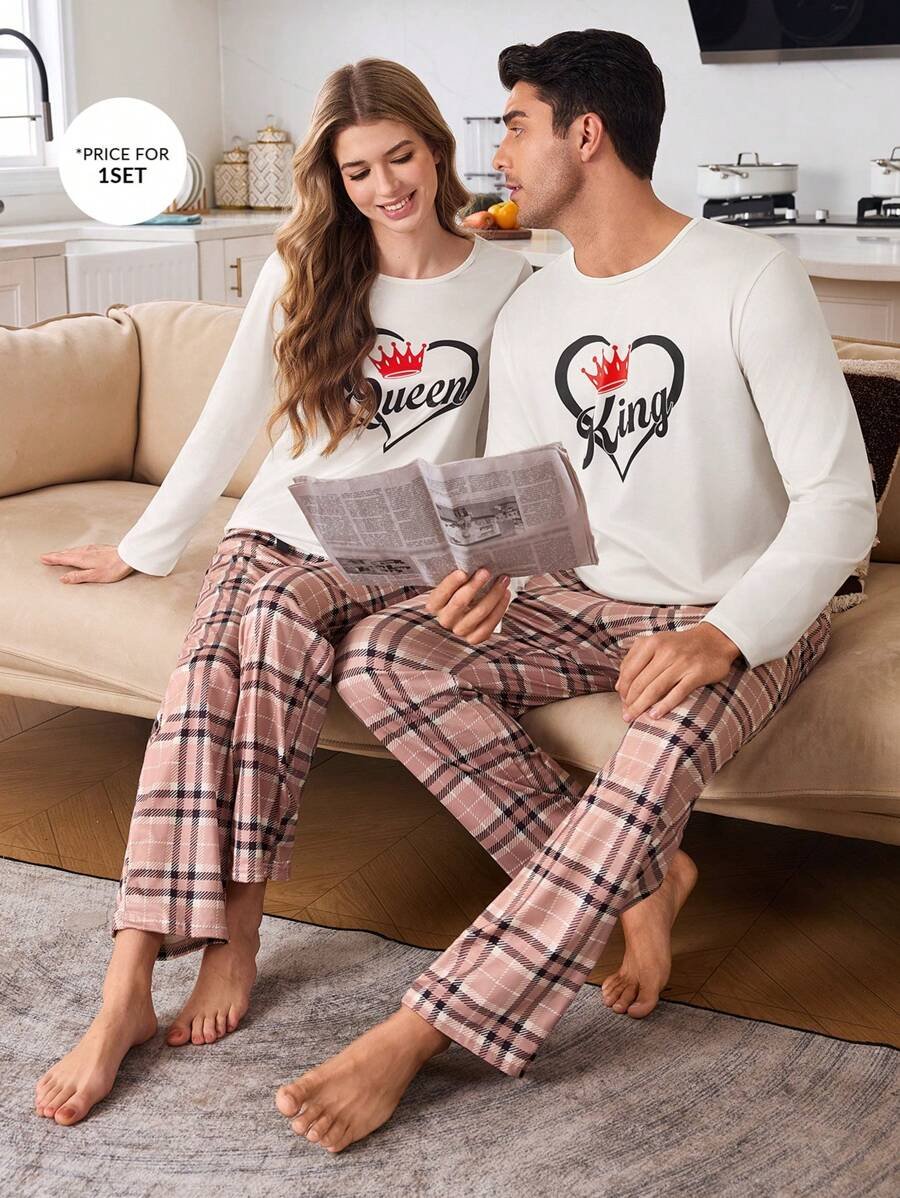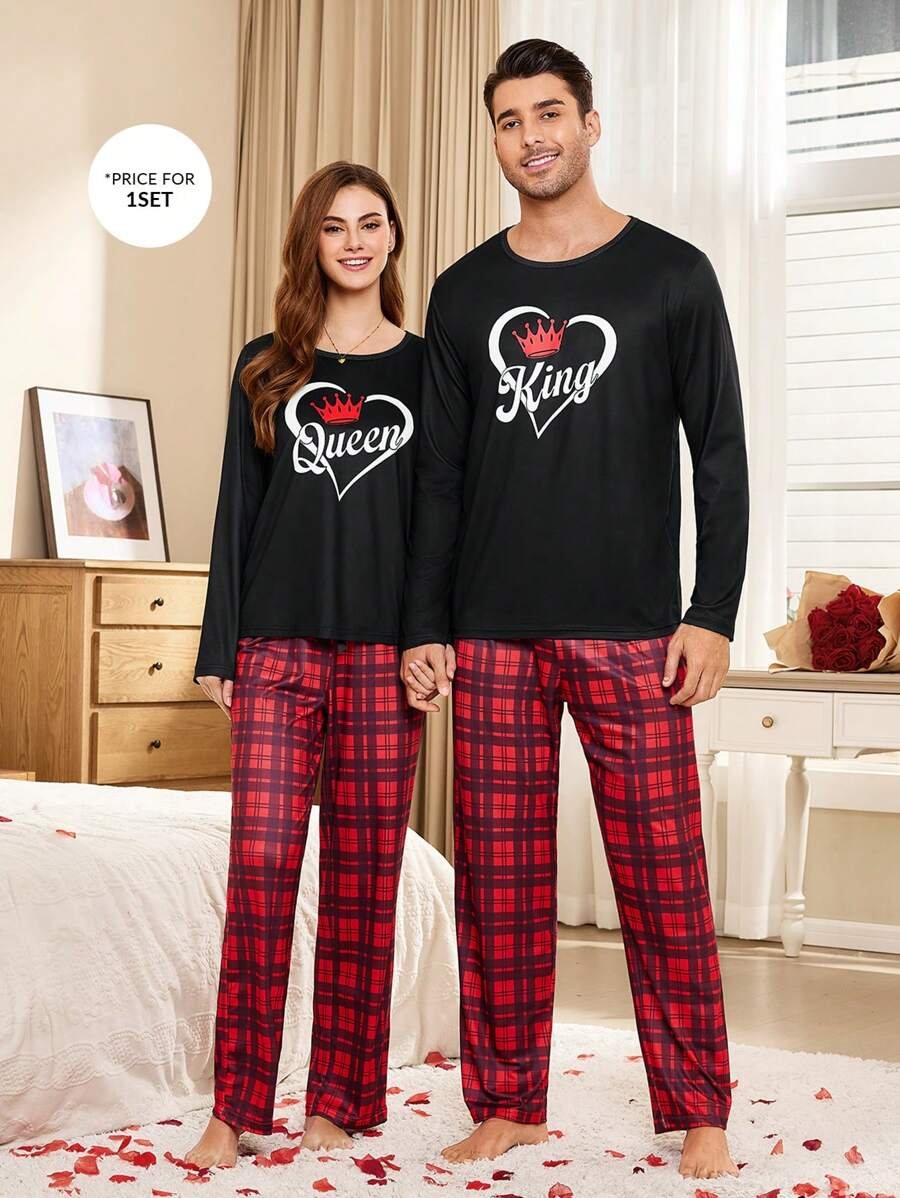 CoupledUp Conjunto de pijama de hombre con corona inglesa y pantalón de contraste de manga larga para el Día de San Valentín