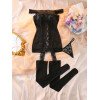 DelicateAllure Set de 2 piezas de lencería: Camisón con hombros descubiertos y tiras cruzadas de encaje + tanga, sexy y encantador para mujeres, para salir