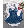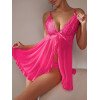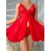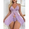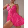 DelicateAllure Vestido de lencería sexy con decoración de encaje, volantes y malla con tanga