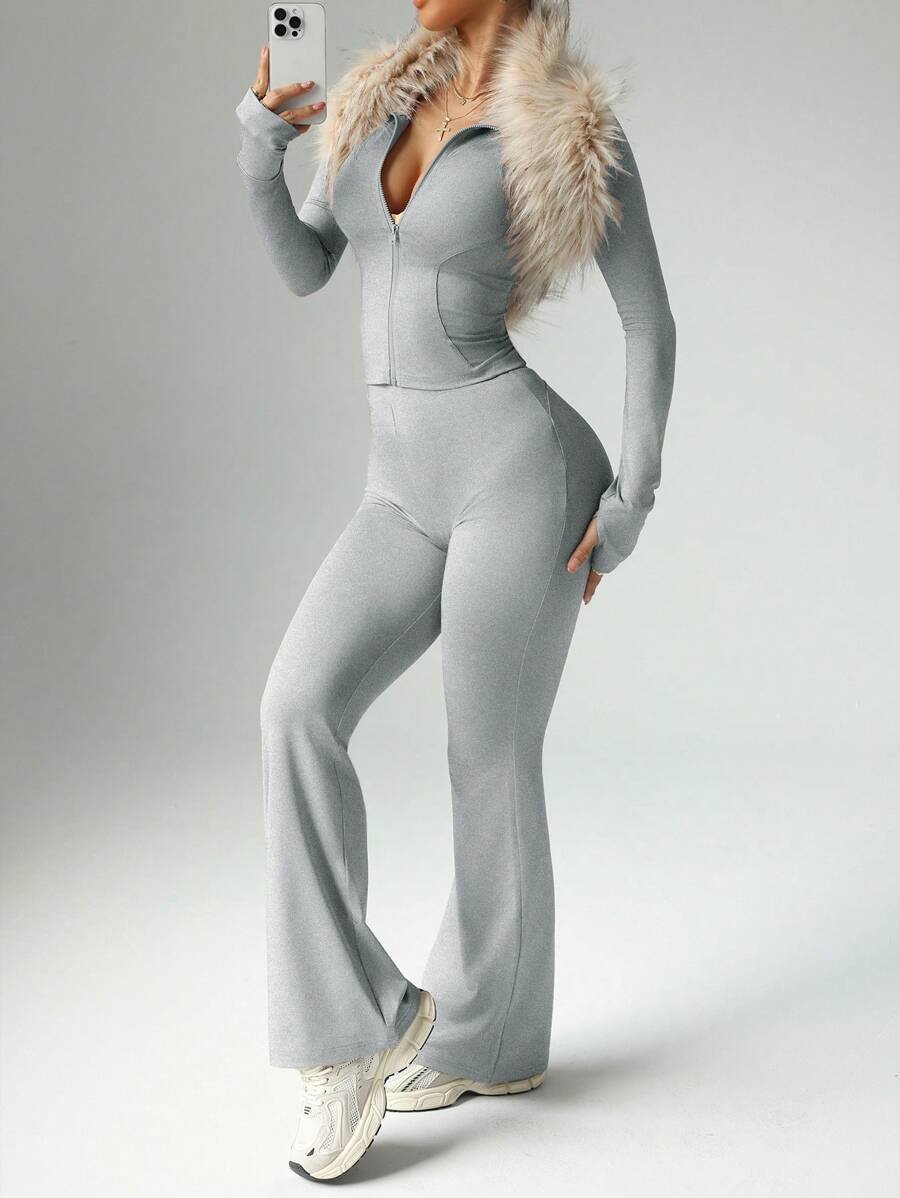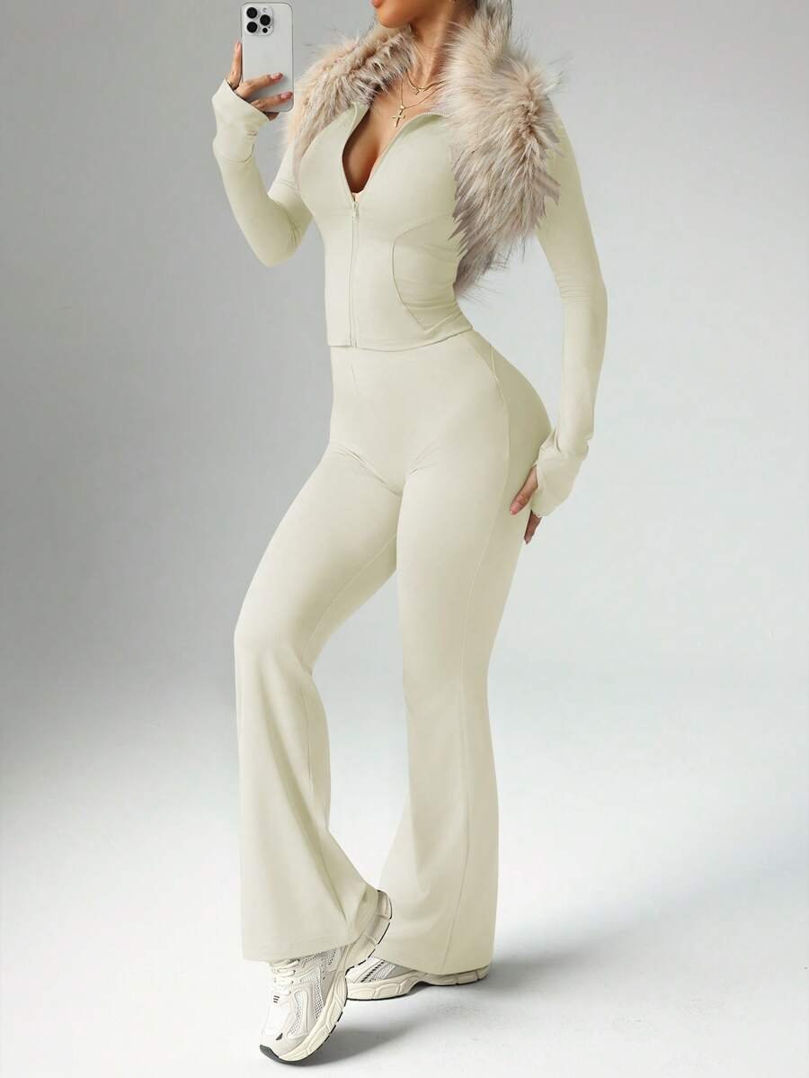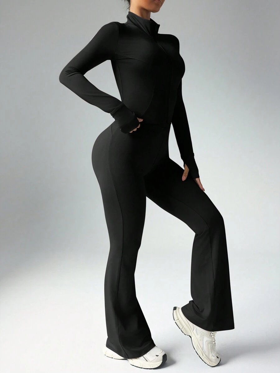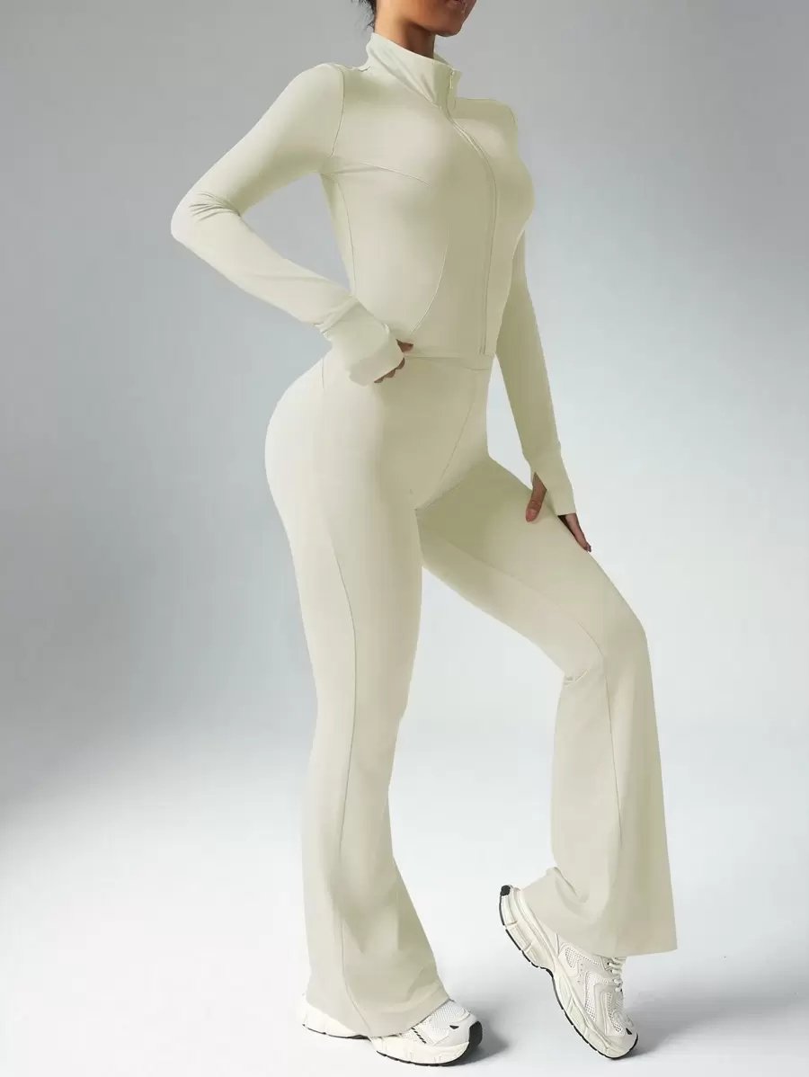 Dewbera Conjunto activo de mujer con top de manga larga de unicolor y pantalones de ajuste ceñido – Conjunto de entrenamiento de mujer – Conjunto de gimnasio para mujer