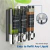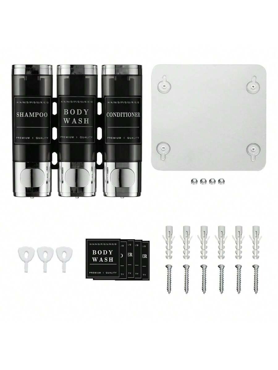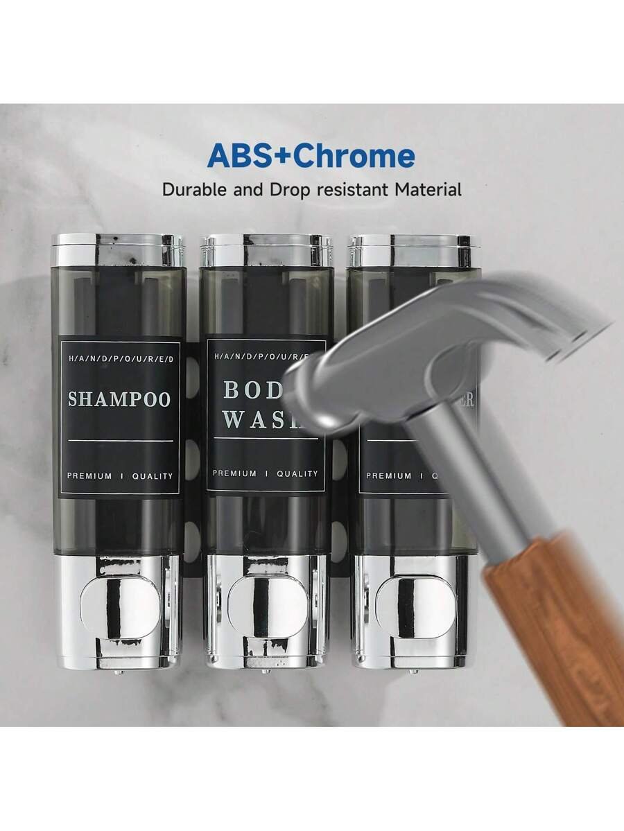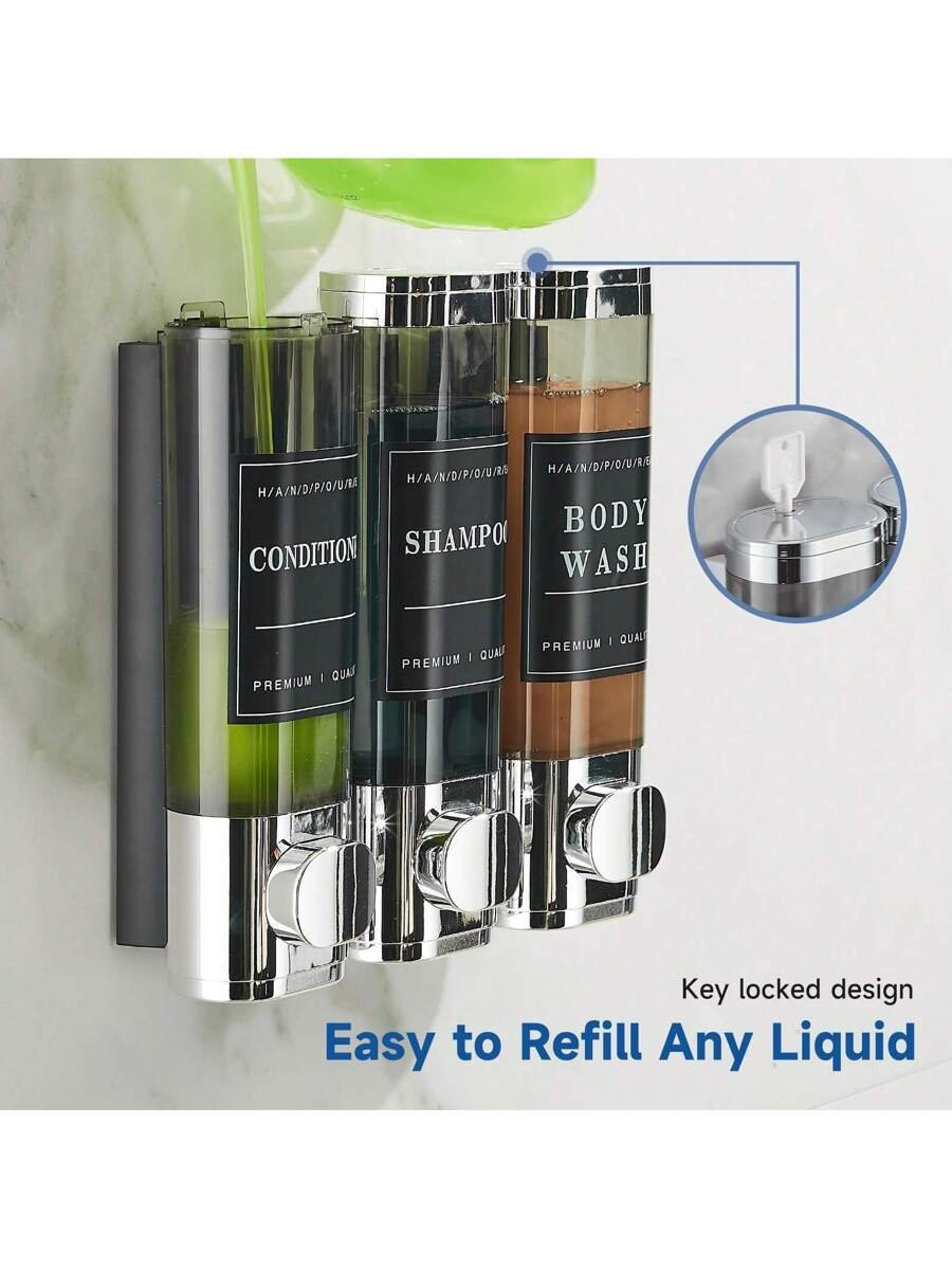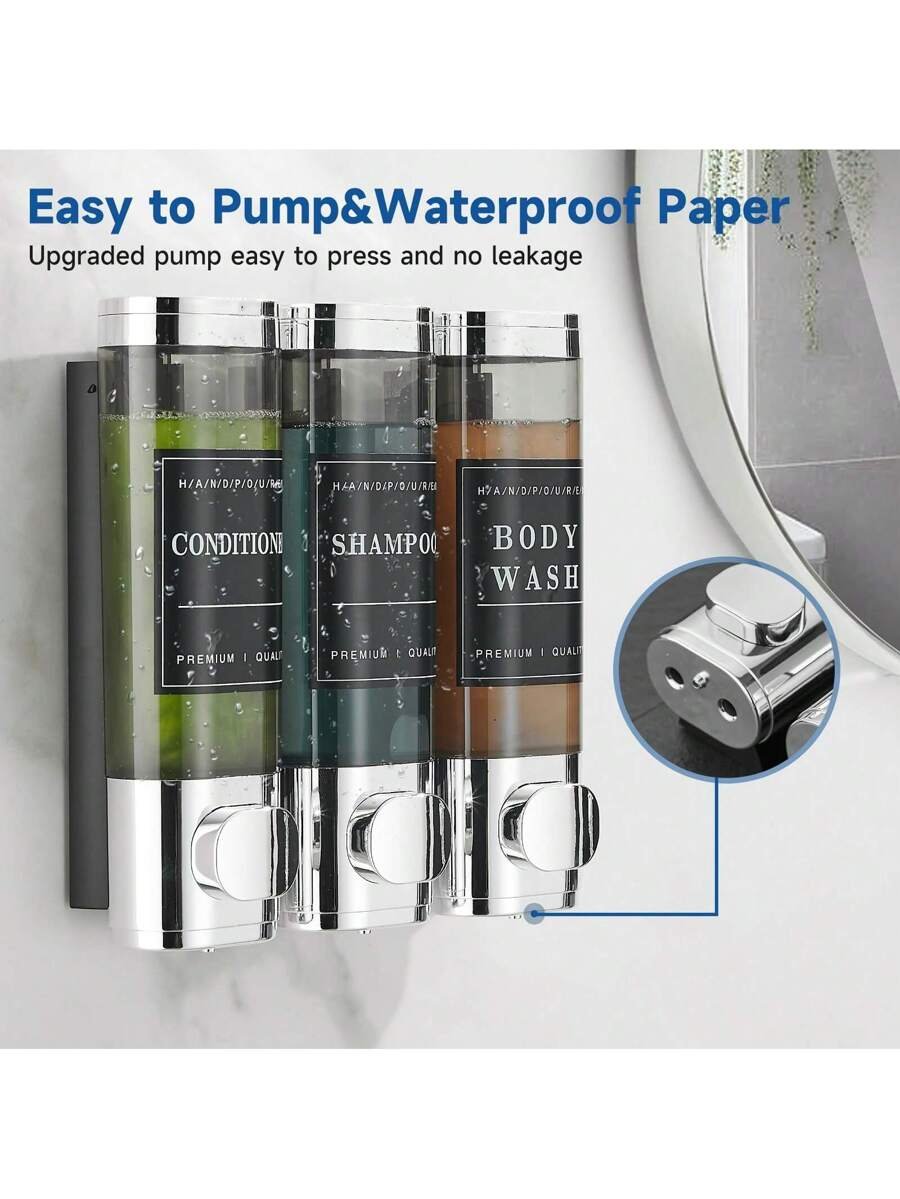 Dispensador de champú y acondicionador, dispensador de jabón de ducha de 3 compartimentos, sin taladro, de pared, para ducha, baño, hotel, gran capacidad, 3300 ml, plateado