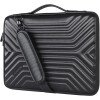 La bolsa para laptop está hecha de tela impermeable, que puede proporcionar una protección superior para tu valioso dispositivo, pero ten en cuenta que hay huecos inevitables en los dientes con cremallera, por lo que la bolsa no debe sumergirse en agua.