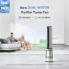 - Motor dual para una verdadera versatilidad: Enfríe y purifique el aire de manera más eficiente controlando cada motor de forma independiente. Maximiza ambos motores para un mejor rendimiento, utiliza solo el motor de purificación para una brisa silenciosa, o maximiza el motor del ventilador para un viento potente sin reducir la vida útil del filtro.
