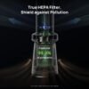 - Filtración electrostática de doble filtro HEPA verdadero: una capa adicional de prefiltración captura partículas más grandes para extender la vida útil del filtro, mientras que el filtro HEPA principal atrapa el 99,9% de las partículas transportadas por el aire hasta 0,3 μm, incluyendo caspa de mascotas, polen y más