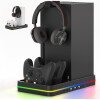 Dual Cooling Fan and Cooling Stand for Xbox Series X/S Console/Controller Dual Controller Charger Station with RGB LED Light & 3 USB Ports,Xbox Series x Accessories with 2 Headphone Hooks