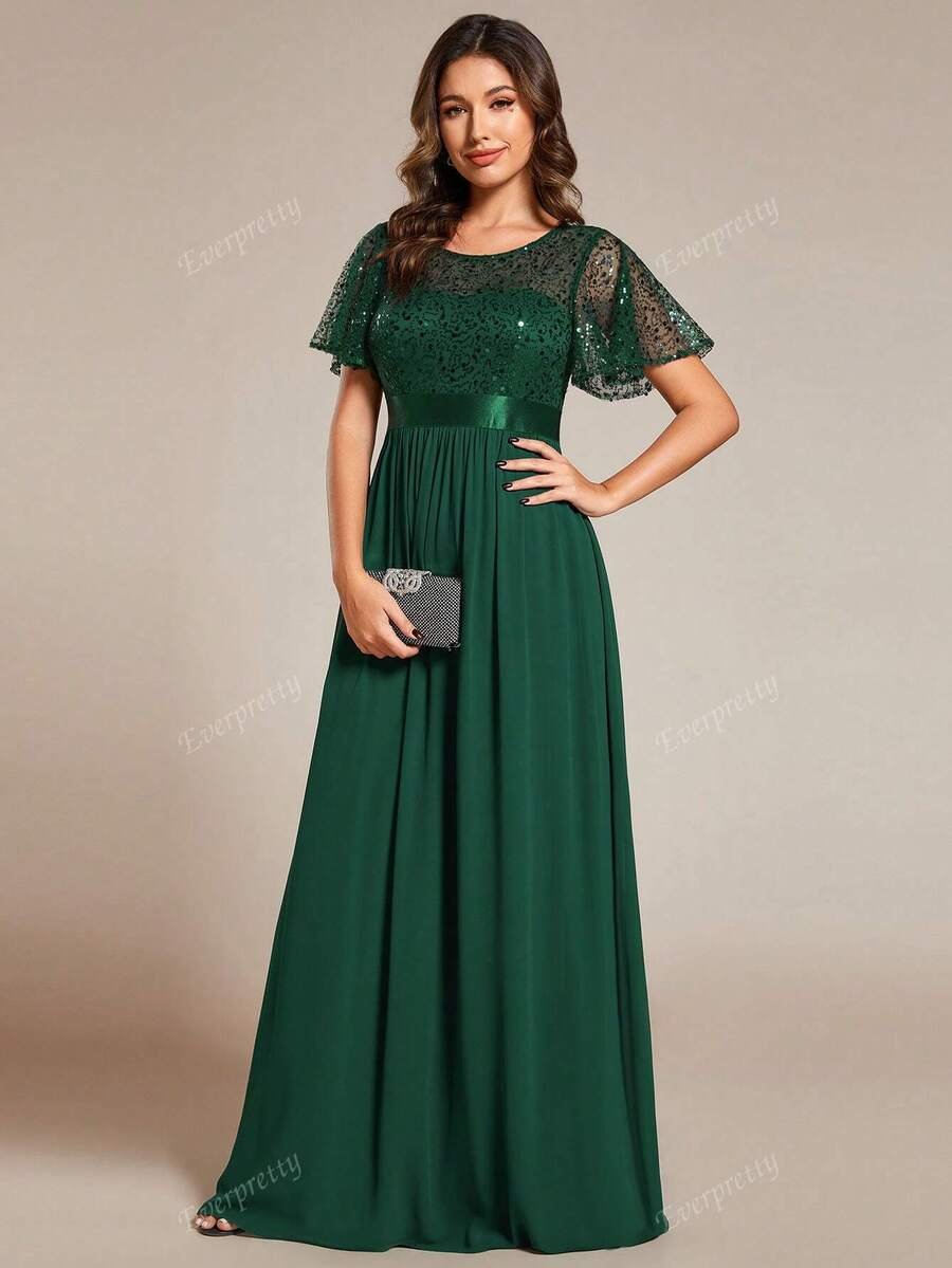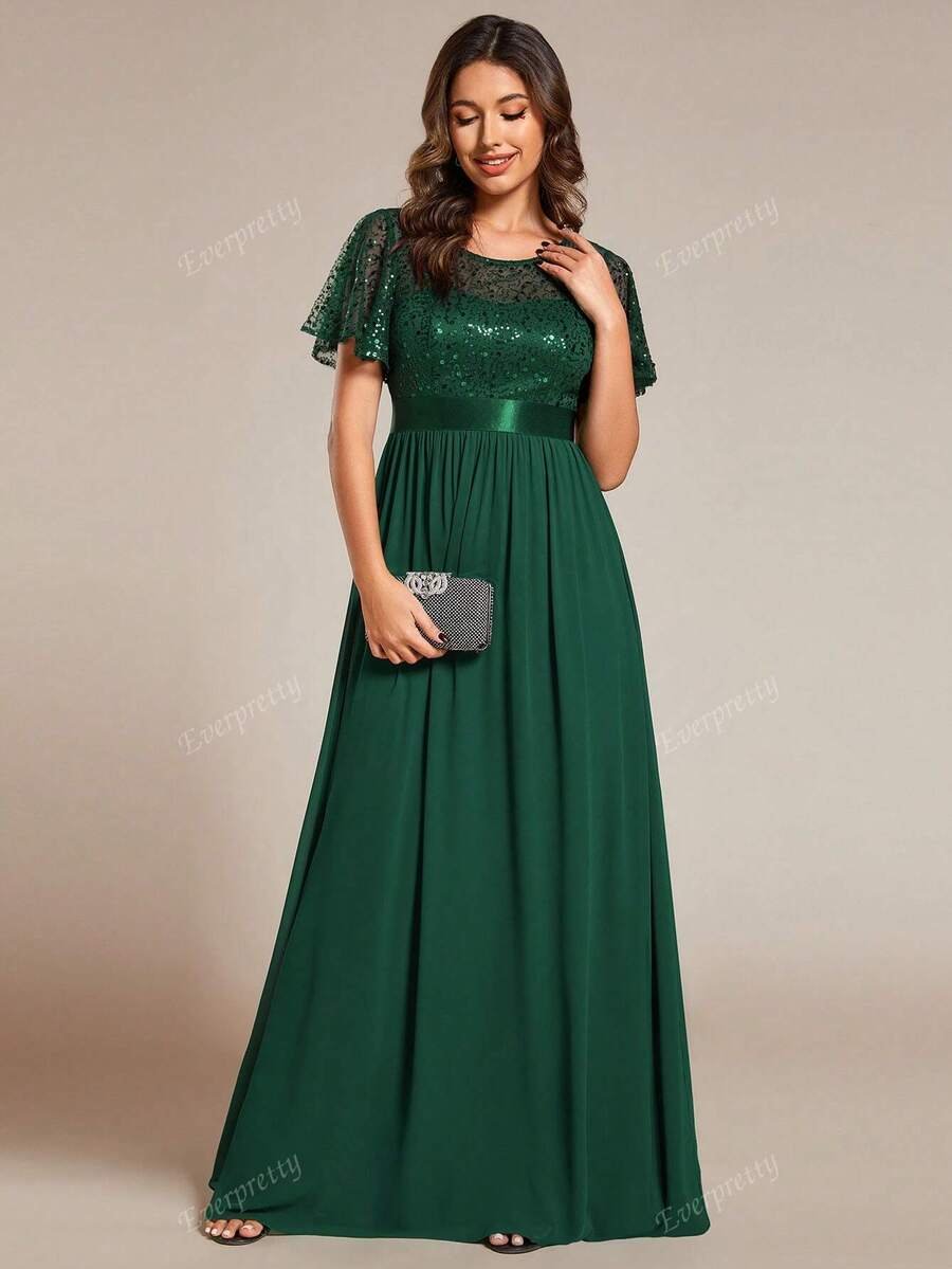 Elegante vestido de dama de honor de gasa fruncida y drapeada de longitud maxi para invitados de boda
