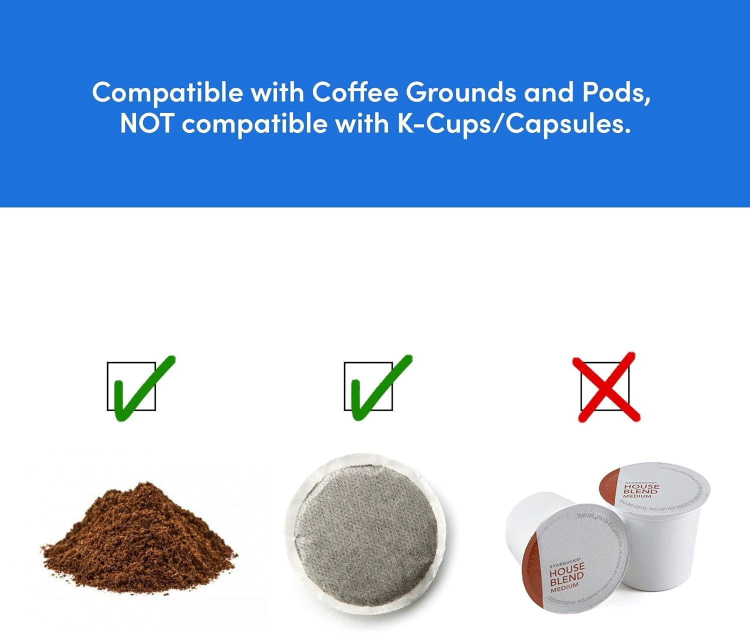 - Preparación con café molido: Prepara una taza de café exactamente como lo quieras con café molido fresco. No más filtros de papel, hemos incluido un filtro extraíble y reutilizable para su uso con café molido y té de hojas sueltas.