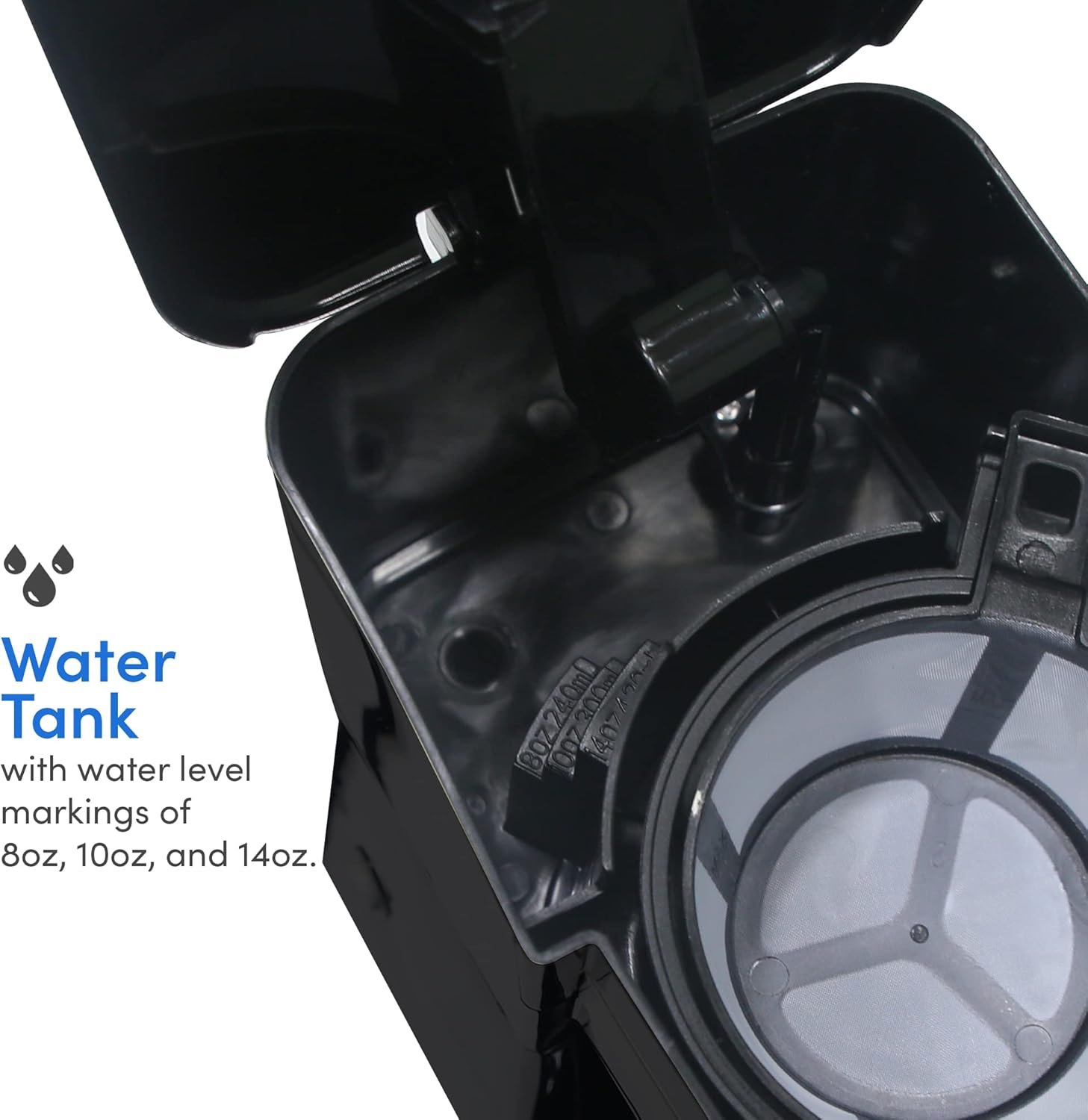 - Fácil funcionamiento con un solo toque: Disfruta de café caliente y recién hecho rápidamente con esta elegante cafetera compacta de 600W. La operación de un solo toque te permite preparar rápida y fácilmente hasta 14 oz de sabroso café a la temperatura perfecta sin tener que esperar en tu cafetería local.