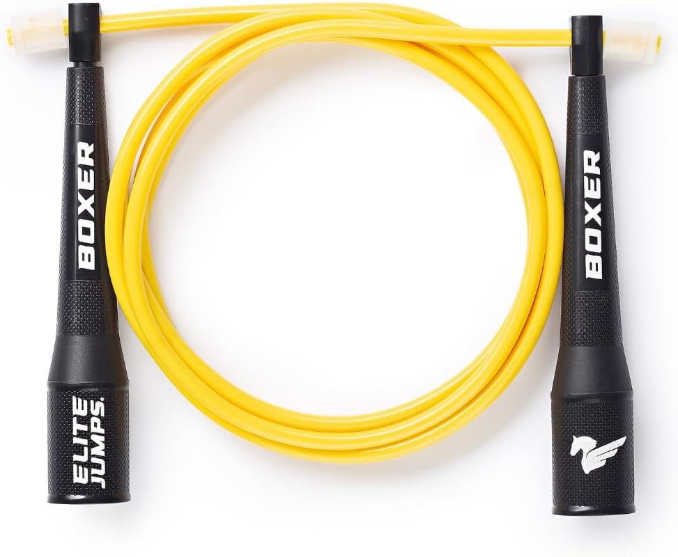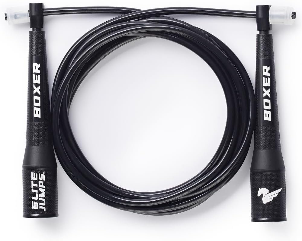 Elite Jumps Boxer – Cuerda de saltar 3.0 para entrenamiento físico y cardiovascular, cuerda de boxeo diseñada profesionalmente con asas de polímero de acción suave y agarres antideslizantes, PVC sin