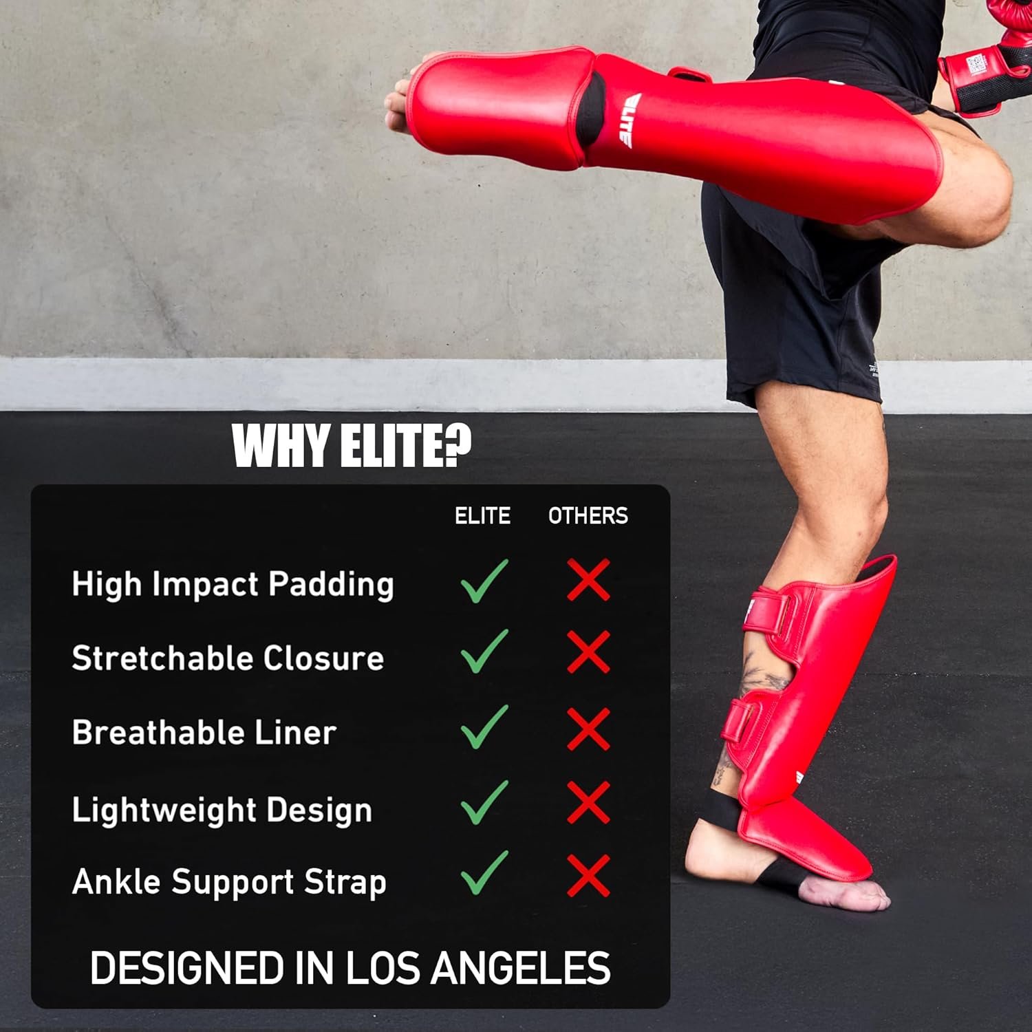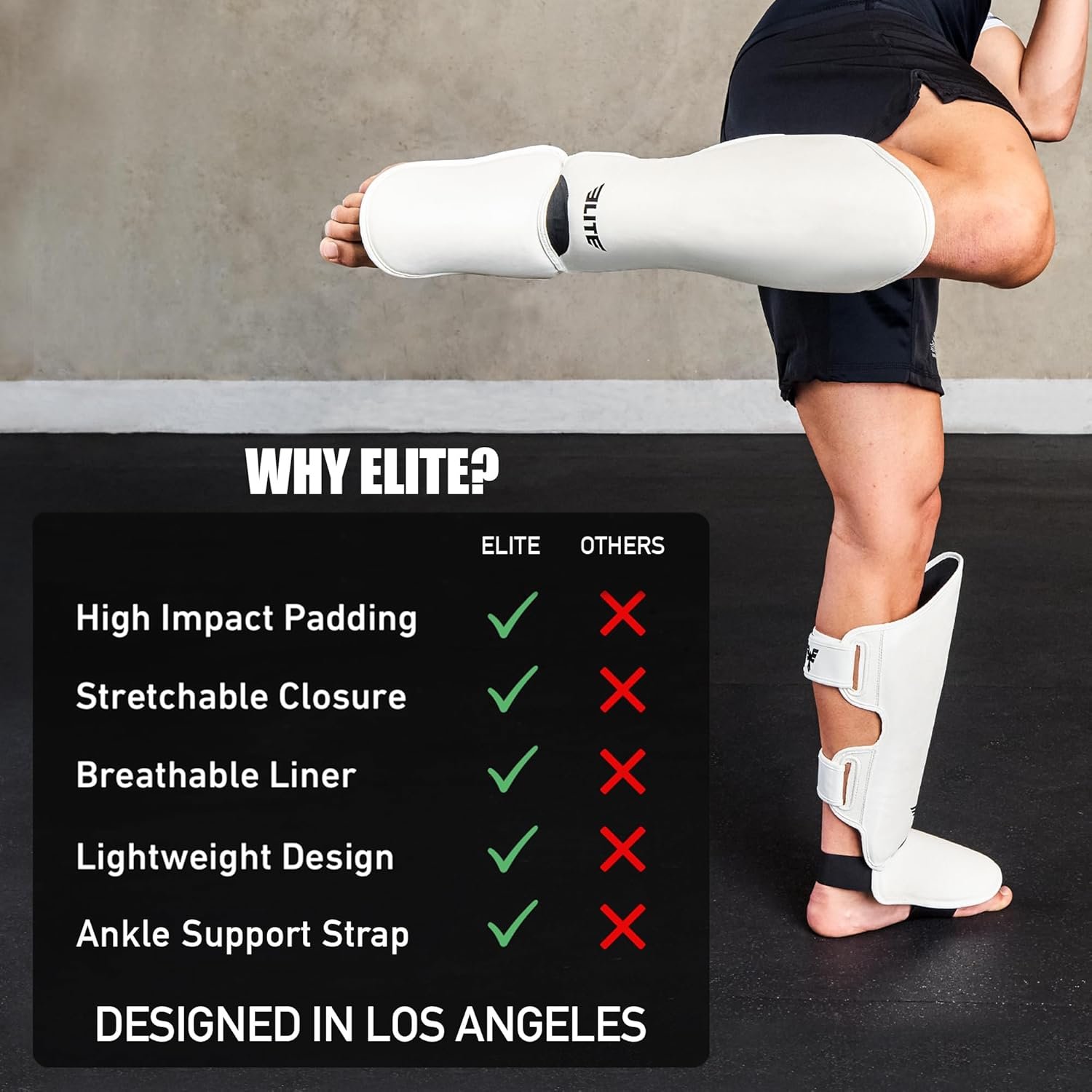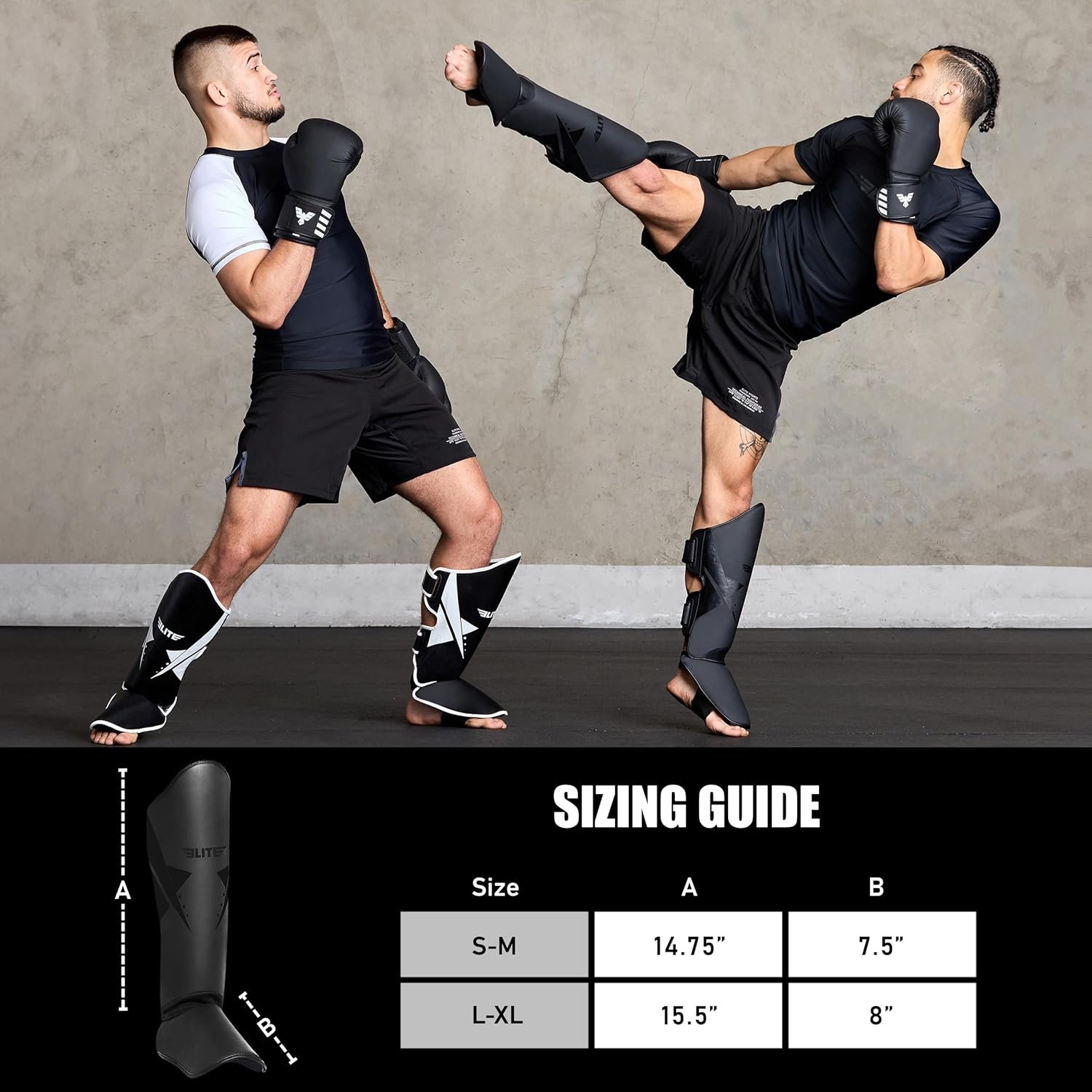 - ✅ Construcción: las espinilleras Elite Sports Muay Thai son espinilleras de alta calidad que están diseñadas para proteger y durar mucho tiempo. Estas espinilleras de kickboxing tienen correas ajustables en la parte superior y las pantorrillas y una correa para el pie para mantener estos protectores de piernas MMA en su lugar.