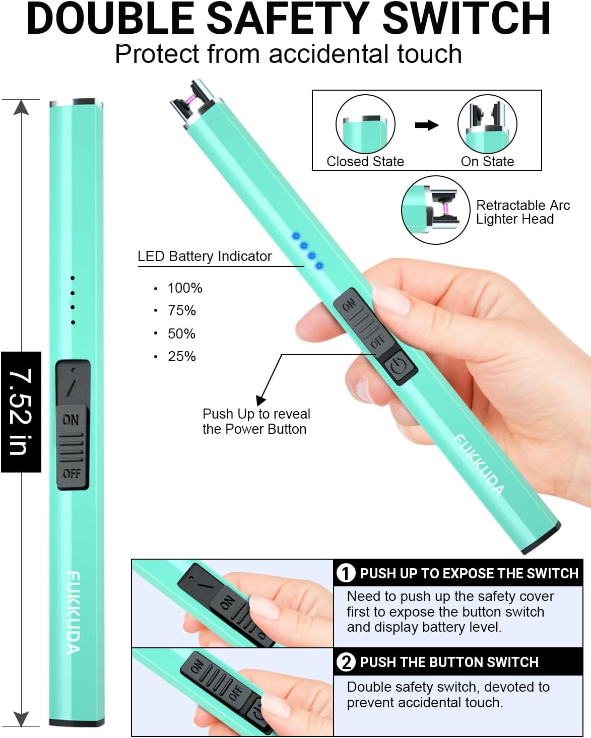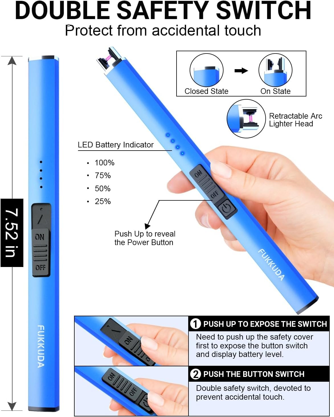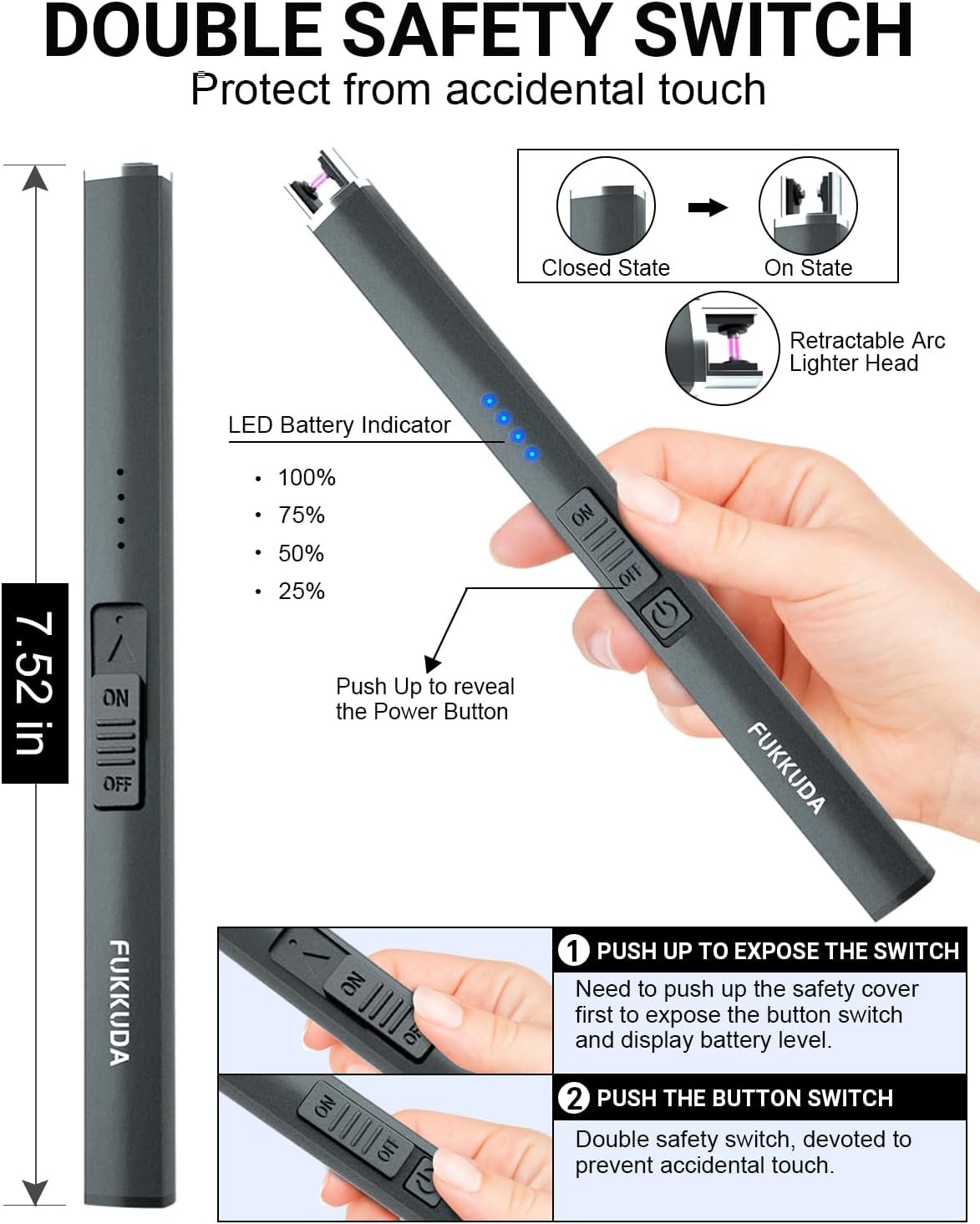El diseño a prueba de viento y salpicaduras protegerá el arco de ser soplado por el viento fuerte. Este encendedor a prueba de viento es una herramienta más ligera ideal para uso en interiores y exteriores. Sin butano, sin llama, sin combustible, sin olor.