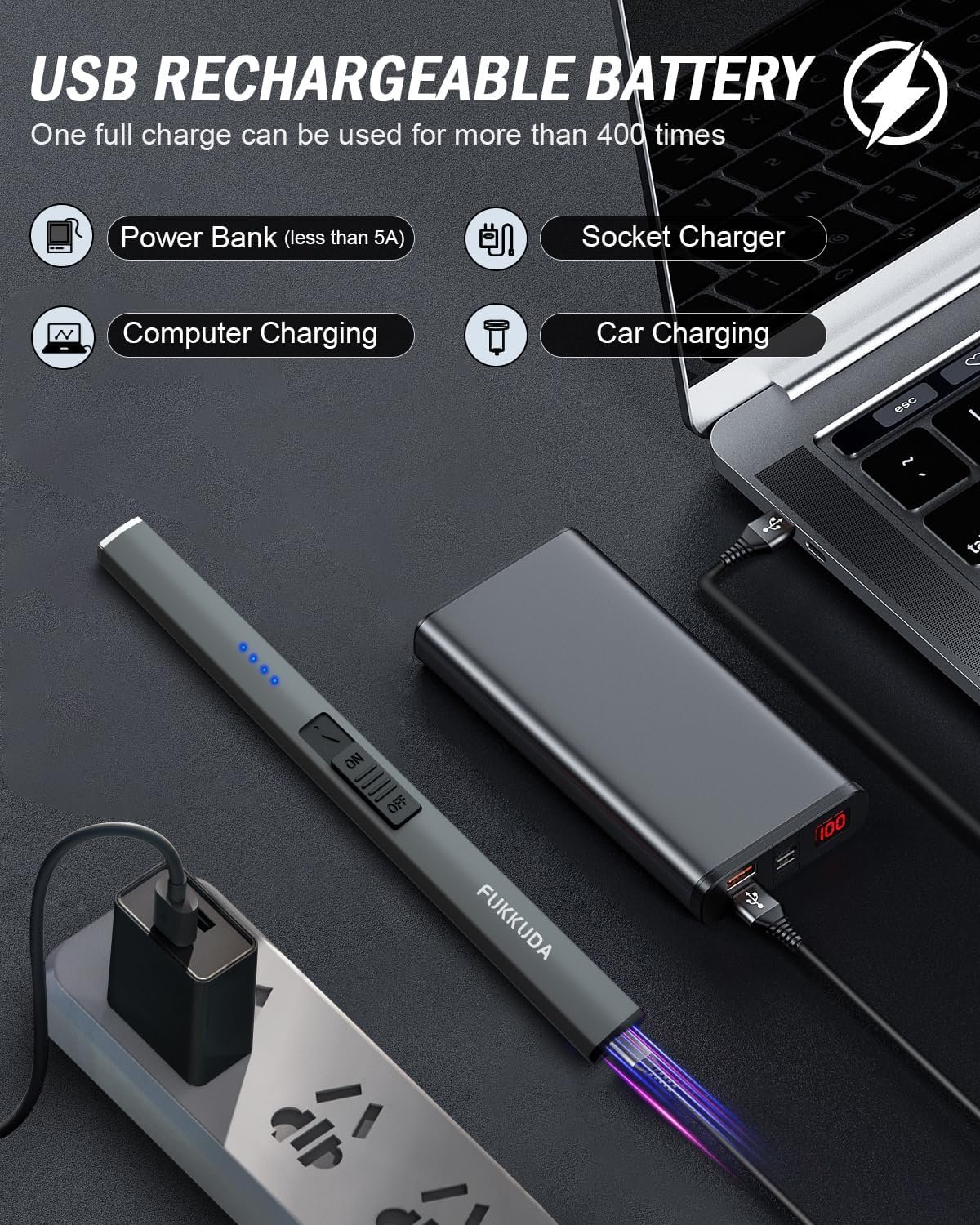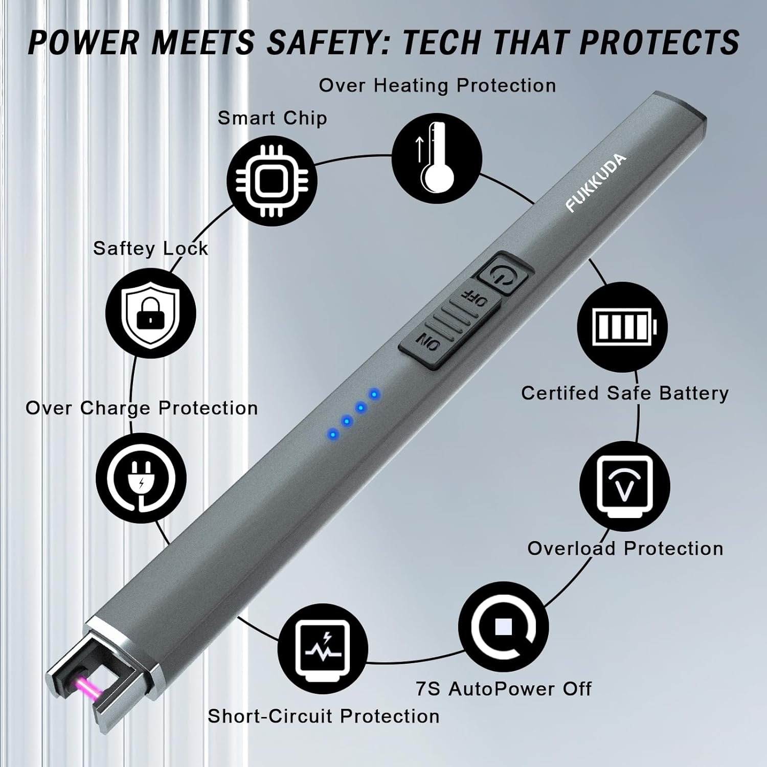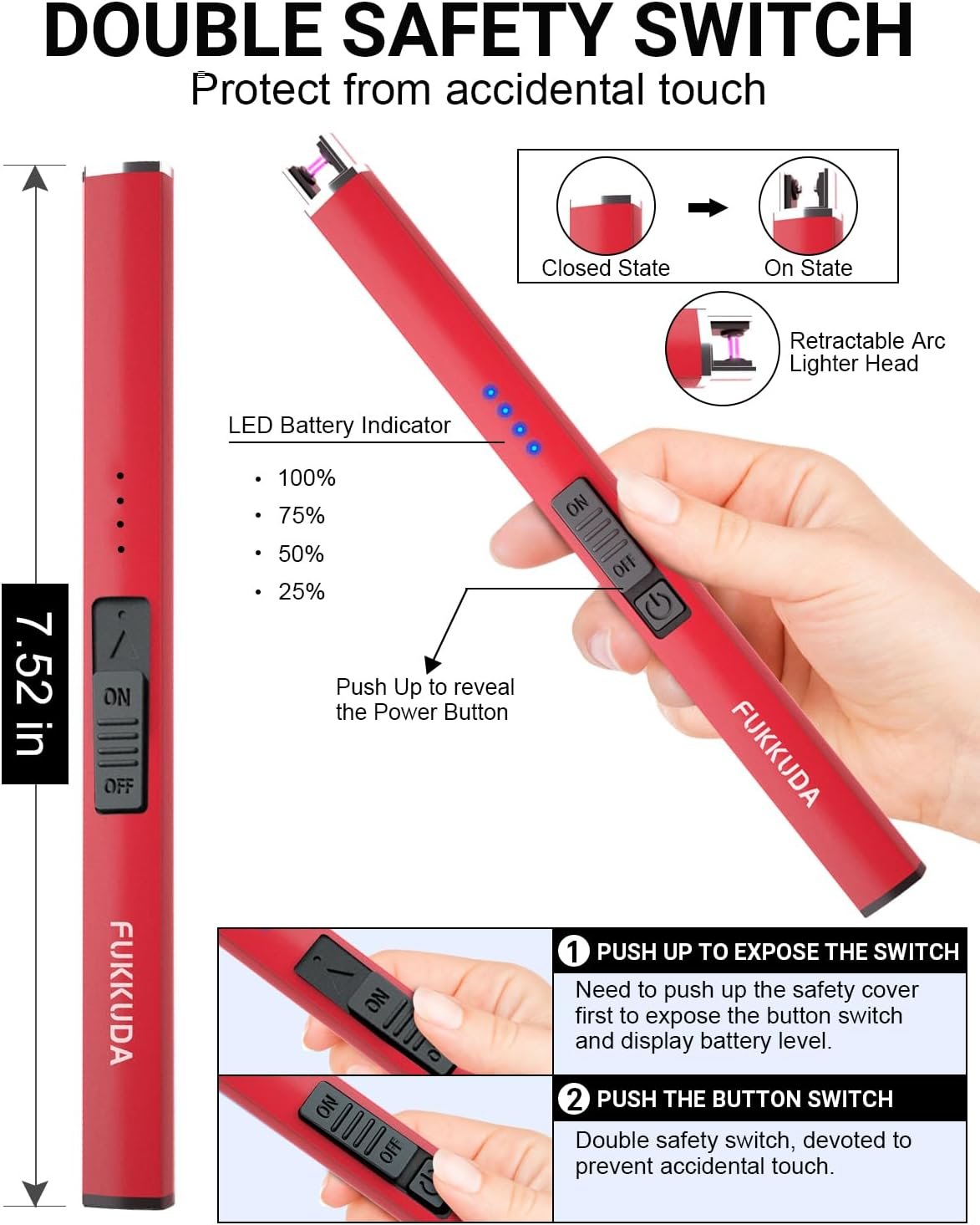El diseño a prueba de viento y salpicaduras protegerá el arco de ser soplado por el viento fuerte. Este encendedor a prueba de viento es una herramienta más ligera ideal para uso en interiores y exteriores. Sin butano, sin llama, sin combustible, sin olor.