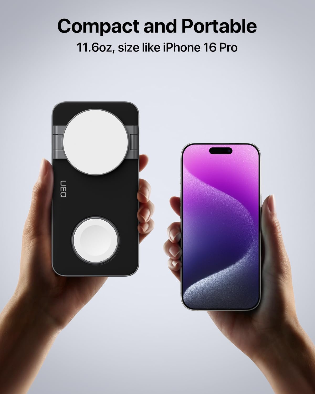 - Lo que obtienes: 1 soporte de cargador inalámbrico magnético 3 en 1 UEQ 1, 1 cargador USB-C de 20 W, cable USB-C a C (3.3 pies/3.3 ft)*1, 1 manual de usuario (idioma español no garantizado). Nuestra estación de carga inalámbrica 3 en 1 también es un regalo ideal para familiares y amigos. Compatible con la estación de carga de iPhone Apple.