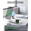 - Estación de carga 3 en 1 para dispositivos Apple: este cargador inalámbrico magnético 3 en 1 rápido puede alimentar tu iPhone, Apple Watch y AirPods simultáneamente. Cargará completamente el iPhone 16 y Apple Watch S10 en aproximadamente 1.5-2.0 horas (otras marcas que no necesitan 3.5 horas). El soporte de cargador seguro solo es adecuado para iPhone 17/Air/16/15/14/13/12, para Apple Watch S11/10/9/8/7/6/5/4/3. /2/SE/2 Ultra 3 2, AirPods Pro 3 2, Airpods 2/3 (con funda de carga inalámbrica). Nota: Para una carga óptima de esta estación de carga inalámbrica, utilice el cargador de pared USB-C de 20 W proporcionado.