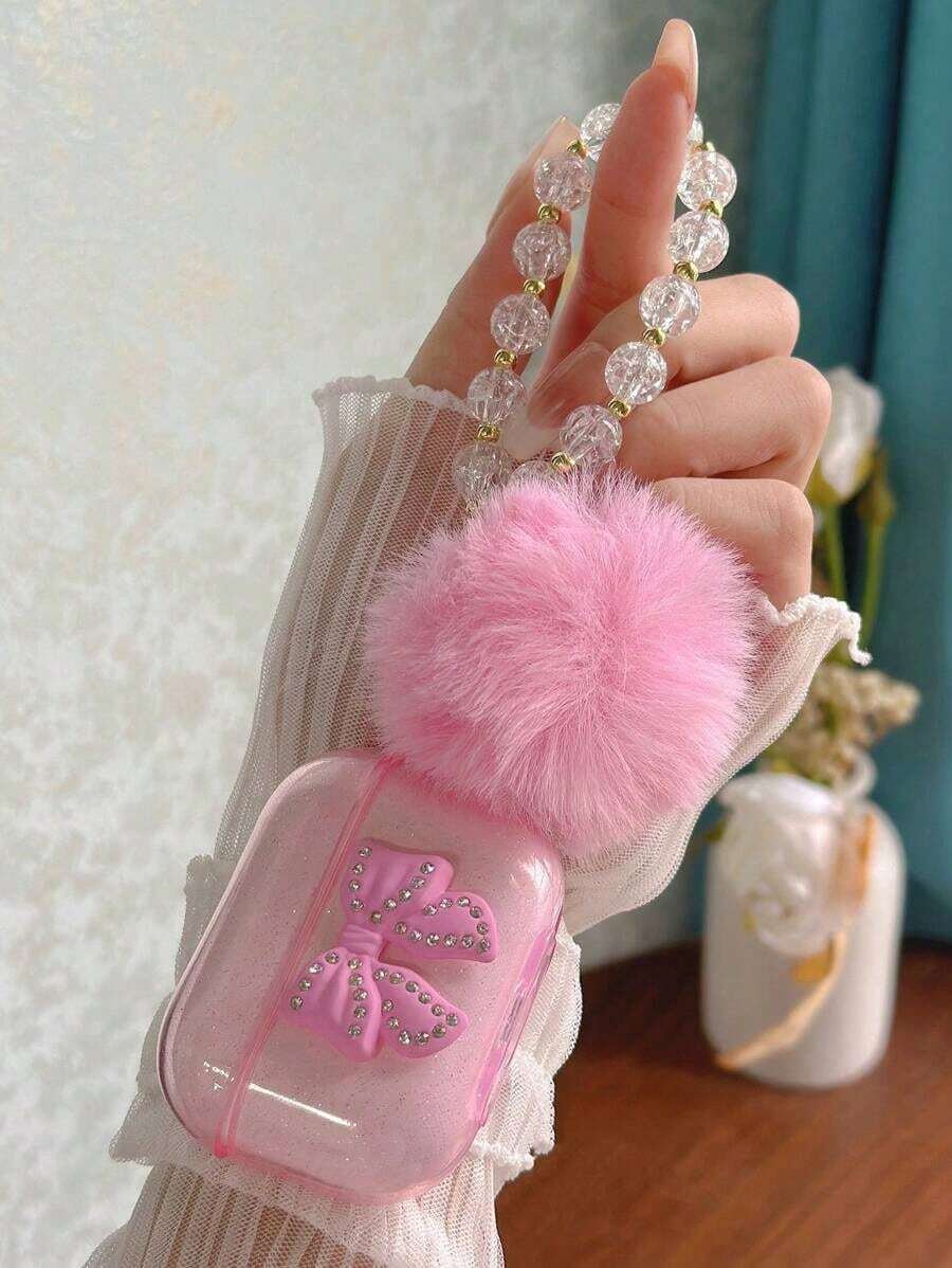 Estuche para auriculares con purpurina transparente de estética de manzana en color rosa bebé – Con strass y lazo | Cadena para auriculares con pompón de flor de hielo y cuentas incluida | Compatible con 1/2/3, Pro 1/2 | A prueba de golpes, anti-arañazos y compatible con carga inalámbrica | Diseño brillante y chispeante, ligero y portátil | Perfecto para uso diario, fiestas e ideas de regalo | Accesorio de estilo para mujeres, niñas y amantes de Apple