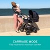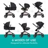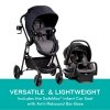El sistema de viaje modular Evenflo® Pivot® es el cochecito multiusos que has estado buscando. Este excepcional combo de carro, cochecito y asiento de coche es un sistema de viaje duradero que incluye el asiento infantil LiteMax™ con barra antirrebote. El marco modular se puede configurar con hasta 6 modos de uso, lo que permite que tu hijo esté orientado hacia los padres o hacia adelante. El cochecito también ofrece múltiples configuraciones, incluyendo el modo de carro, modo para niños pequeños o un cochecito de marco con asiento de automóvil para bebés. Para mayor comodidad, el modo de transporte permite que tu bebé se recline y se estire completamente. El asiento para niños pequeños tiene un peso máximo de 50 libras (49.8 lbs), con recomendaciones de altura de hasta 38 pulgadas (37.8 in), mientras que el asiento para automóvil tiene un peso máximo de 35 libras (34.8 lbs) y una altura máxima de 32 pulgadas (32.0 in). El asiento de automóvil infantil LiteMax no solo es cómodo con una almohada extraíble, sino que ha sido probado contra impactos laterales y vuelcos. Cuenta con una barra antirrebote que absorbe y disipa las fuerzas de choque para ayudar a proporcionar estabilidad adicional. Incluye una base para permanecer en el automóvil que permite una conexión rápida y fácil del asiento de automóvil para bebés. Nuestro sistema integrado de bloqueo de correa proporciona la tranquilidad de que la base se ha instalado de forma segura. El cochecito rico en características incluye neumáticos de crucero para que sea fácil navegar sobre múltiples superficies, un toldo grande con una ventana para mirar, una canasta de almacenamiento de gran tamaño, una barra de parachoques extraíble con portavasos y bandeja de aperitivos, y un práctico plegado autosuficiente.