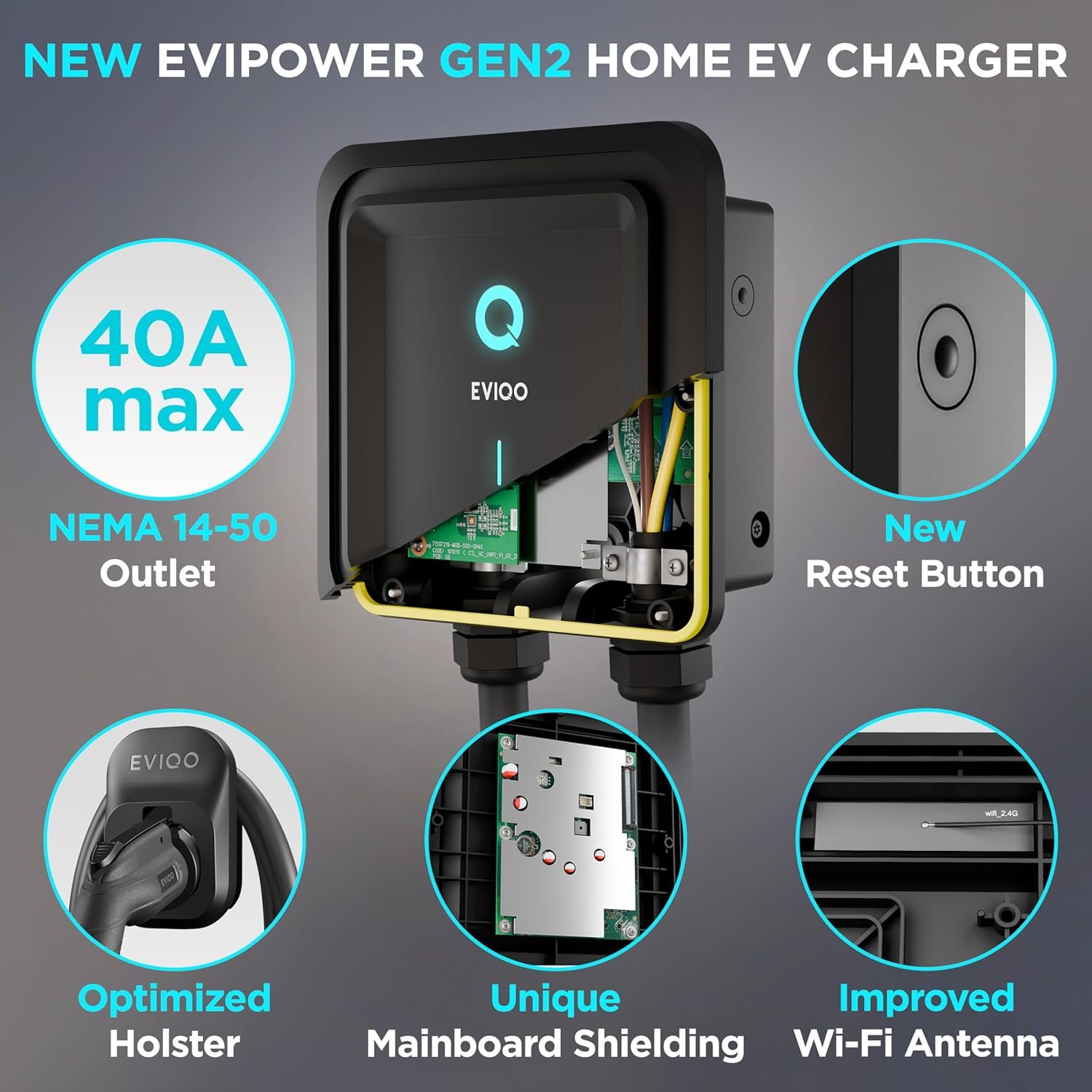 Accesorios de autos, Automotores, AutosEVIQO Cargador EV de nivel 2 – Cargador EV de pared para el hogar nivel 2 48 amperios para coche eléctrico – 240 V NEMA 14-50 Enchufe 11.5kW EVSE J1772 Cargadores, Energy Star/UL – Estaciones de carga