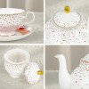 This classic and elegant tea set complements any style of dining table perfectly, creating an unforgettable dining experience in any occasions, such as the family breakfast, holiday gathering, afternoon tea, birthday party, anniversaries and house warming.
