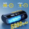 - Trabajo continuo de inflado a chorro: con batería de 5000 mAh, el X9 Ace puede inflar 8 neumáticos con una sola carga; también esta bomba eléctrica para bicicleta cuenta con un sistema de refrigeración, lo que le permite funcionar continuamente durante 25 minutos sin la necesidad de descansos a mitad de sesión