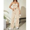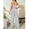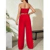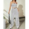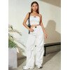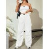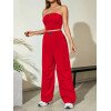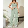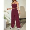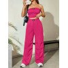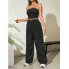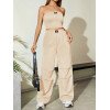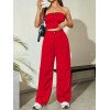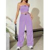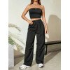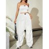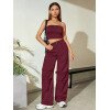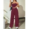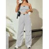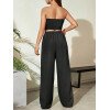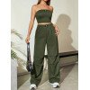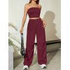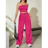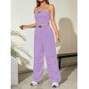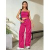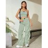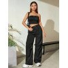 Flirla Conjunto para mujer de 2 piezas suelto y casual de verano: top corto bustier con estampado de letra y pantalones plisados de pierna ancha