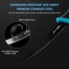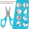 • Multifunction Fishing Scissors with Sheath: Scissors include braided line snips, tube cutter, split shot crimper, cutting notch, hook regulator, tighten knots, bottle opener, slot screwdriver, and lanyard hole to secure. The super sharp and corrosion resistant 5CR15 stainless steel blades are dual micro-serrated, can cut braided line, monocarbon and fluorocarbon easily. Rubber coated handles provide comfort and secure grip