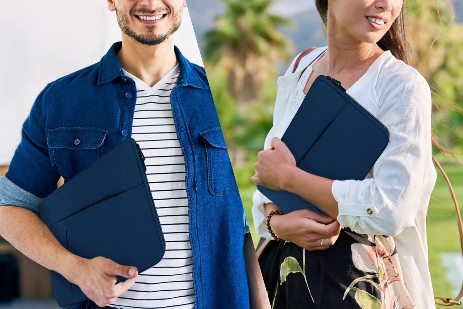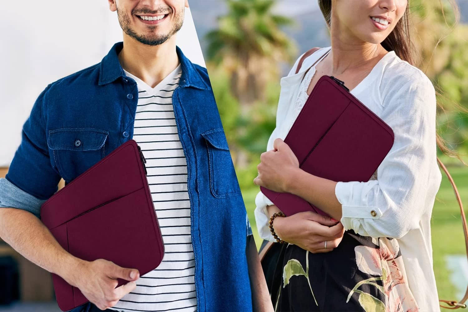 Diseño de manga que se puede deslizar fácilmente y caber en una mochila más grande, maletín, bolsa de mensajero, otras bolsas protectoras o lo suficientemente protectora como para ser llevada sola.
