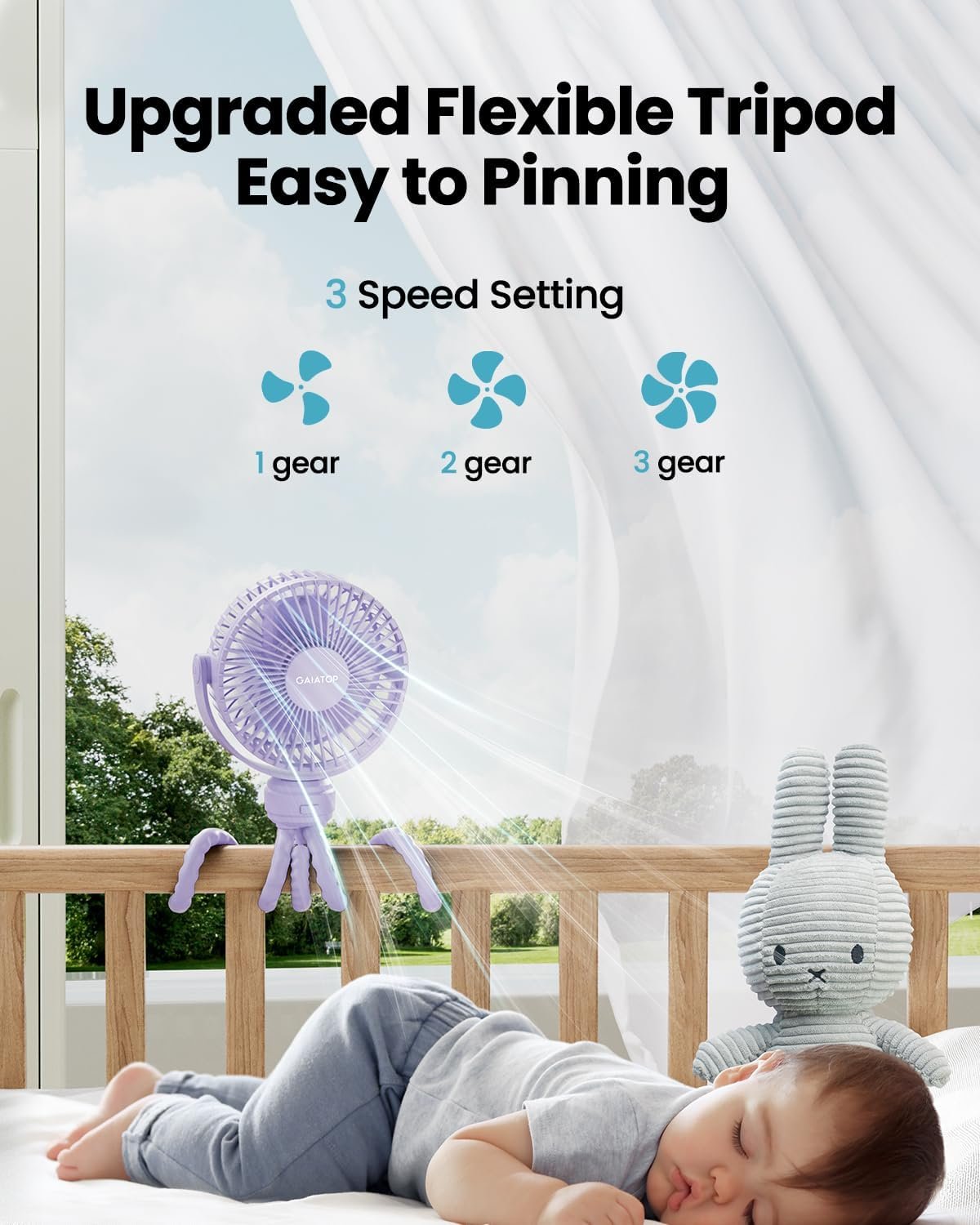 Accesorios Bebés, Bebés, Bebés, Niños y Juguetes, CochecitosGaiatop Mini ventilador portátil para cochecito, funciona con pilas, pequeño clip, desmontable de 3 velocidades recargable, gira 360°, trípode flexible de mejor refrigeración para asiento de