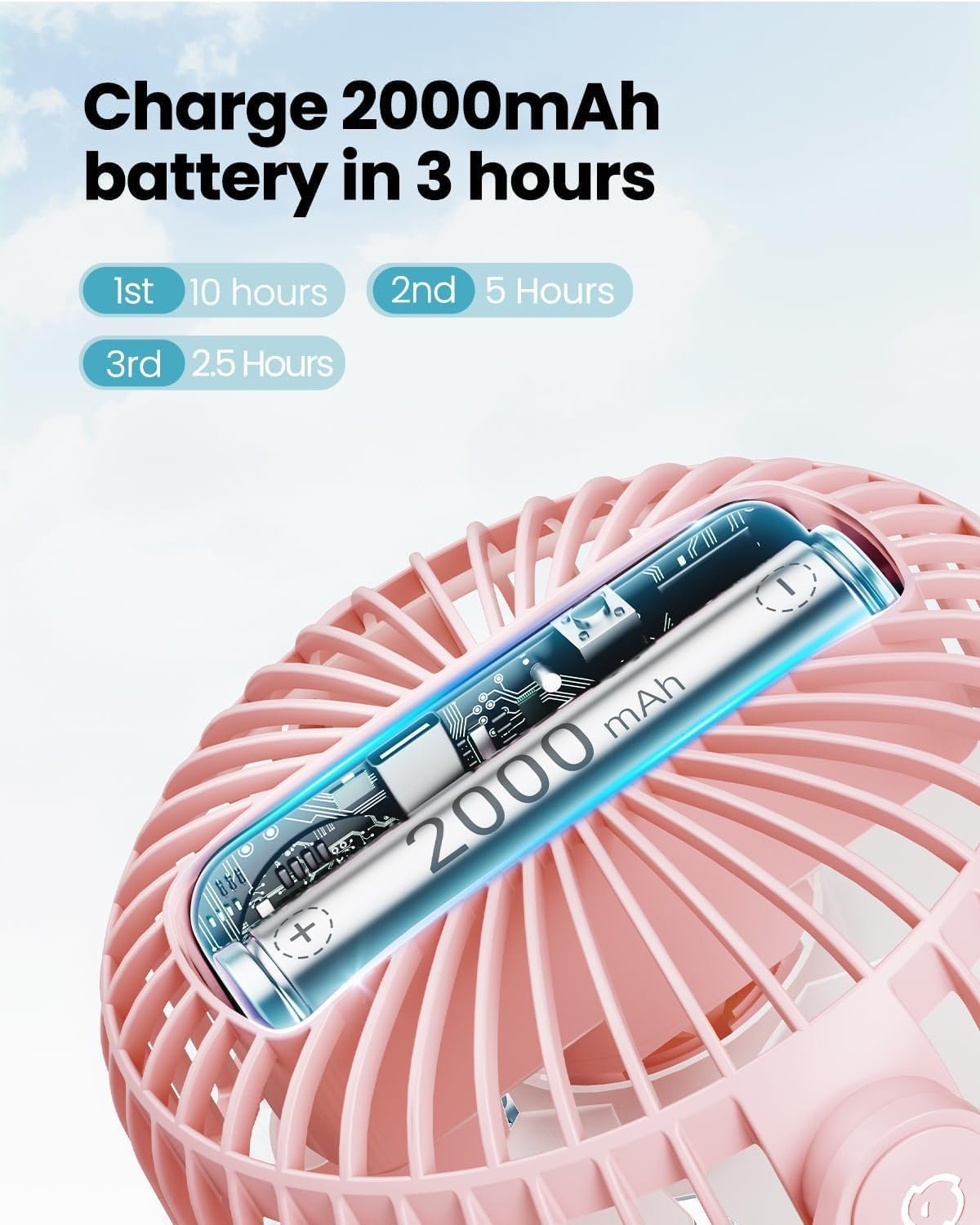 - Funciona con USB o batería recargable: la capacidad de 2000 mAh puede durar de 3.5 a 10 horas (dependiendo de las velocidades), se puede utilizar mientras se carga; adecuado para dormitorios, escritorios, cochecitos, camping, asientos de automóvil, cunas, tu camping, artículos esenciales de viaje a la playa
