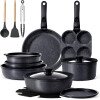 - Healthy Ceramic Coating – Made with 100% non-toxic ceramic nonstick coating, free from PFOA, PFAS, PTFE, lead, and cadmium. Enjoy healthier cooking with ceramic pots and pans set