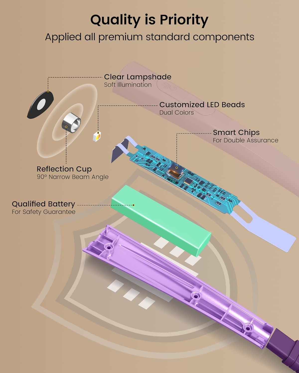 - Recargable y de larga duración: esta luz de lectura de cuello recargable con USB tipo C que es reversible y, por lo tanto, más fácil de conectar en comparación con otras luces de cuello para manualidades cargadas con micro USB. Hasta 80 horas (lectura general, cabezal único) de brillo potente y no disminuyente de la batería recargable premium incluida de 1000 mAh. Una luz recargable USB de larga duración para leer en la cama.