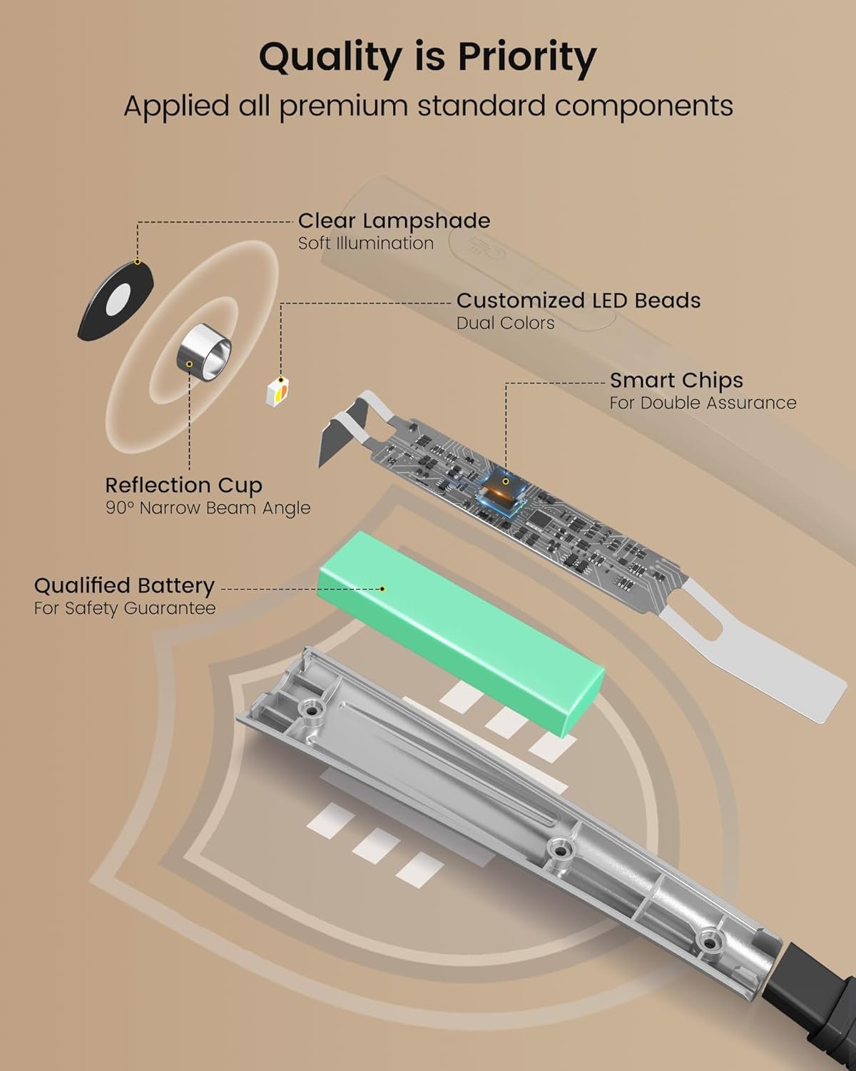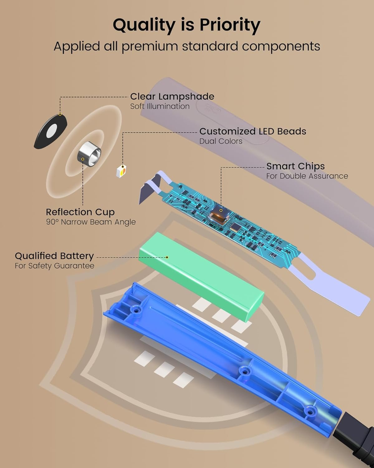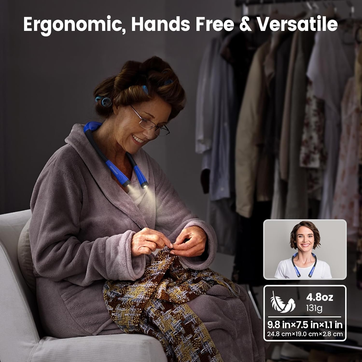 - Cuidado de los ojos y diseño ergonómico: filtro de luz azul y diseño sin parpadeo por las avanzadas cuentas LED de la luz de lectura Glocusent En comparación con otras luces de lectura para libros en la cama, no sentirás más fatiga ocular con la luz de libro de Glocusent Los brazos de la luz de lectura alrededor de tu cuello son flexibles y ajustables para que puedas obtener el ángulo más cómodo para ti. Esta luz de lectura alrededor del cuello está diseñada ergonómicamente, es una lámpara de cuello manos libres excepcional para leer