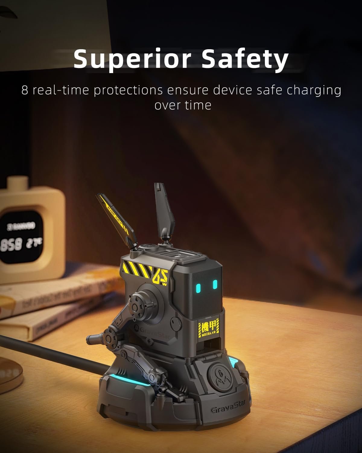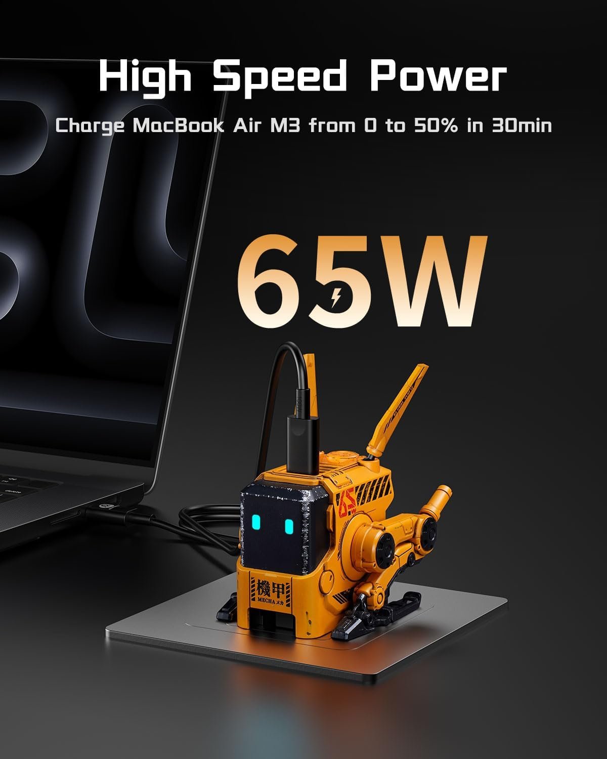 - Diseño de robot Mecha, hace que el cargador sea más divertido: el cargador rápido Alpha de 65 W USB C no es solo un dispositivo de carga, es una pieza de declaración que aporta vibraciones futuristas a tu espacio. Con su función única de cambio de forma, puede sentarse para cargar o ponerse de pie para mostrarse. No es solo un cargador, sino también un gadgets tecnológicos geniales. No solo es genial, sino también un regalo muy práctico para hombres, que es una opción perfecta de regalo para el Día del Padre.