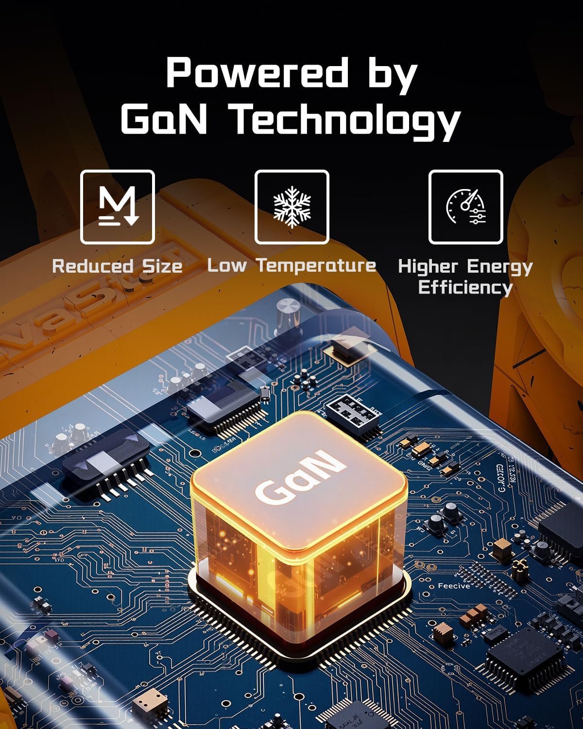 - Características de seguridad integrales: Alpha65 viene con 8 protecciones en tiempo real, incluyendo sobretensión, sobrecorriente, cortocircuito, sobretemperatura, sobrepotencia, bajo voltaje, electrostática y protección antiinterferencia. El cargador también cuenta con una carcasa ignífuga para una carga segura. Estas características garantizan la seguridad del usuario y la longevidad del dispositivo, proporcionando tranquilidad durante las sesiones de carga.
