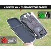 The size (9.8″ x 4.3″ x 1″) of our glove case is so designed to be able to hold even XXL gloves, which some of the products on the market don’t. The slim case is capable of storing up to 3 gloves inside and 1 glove outside by the hook area.
